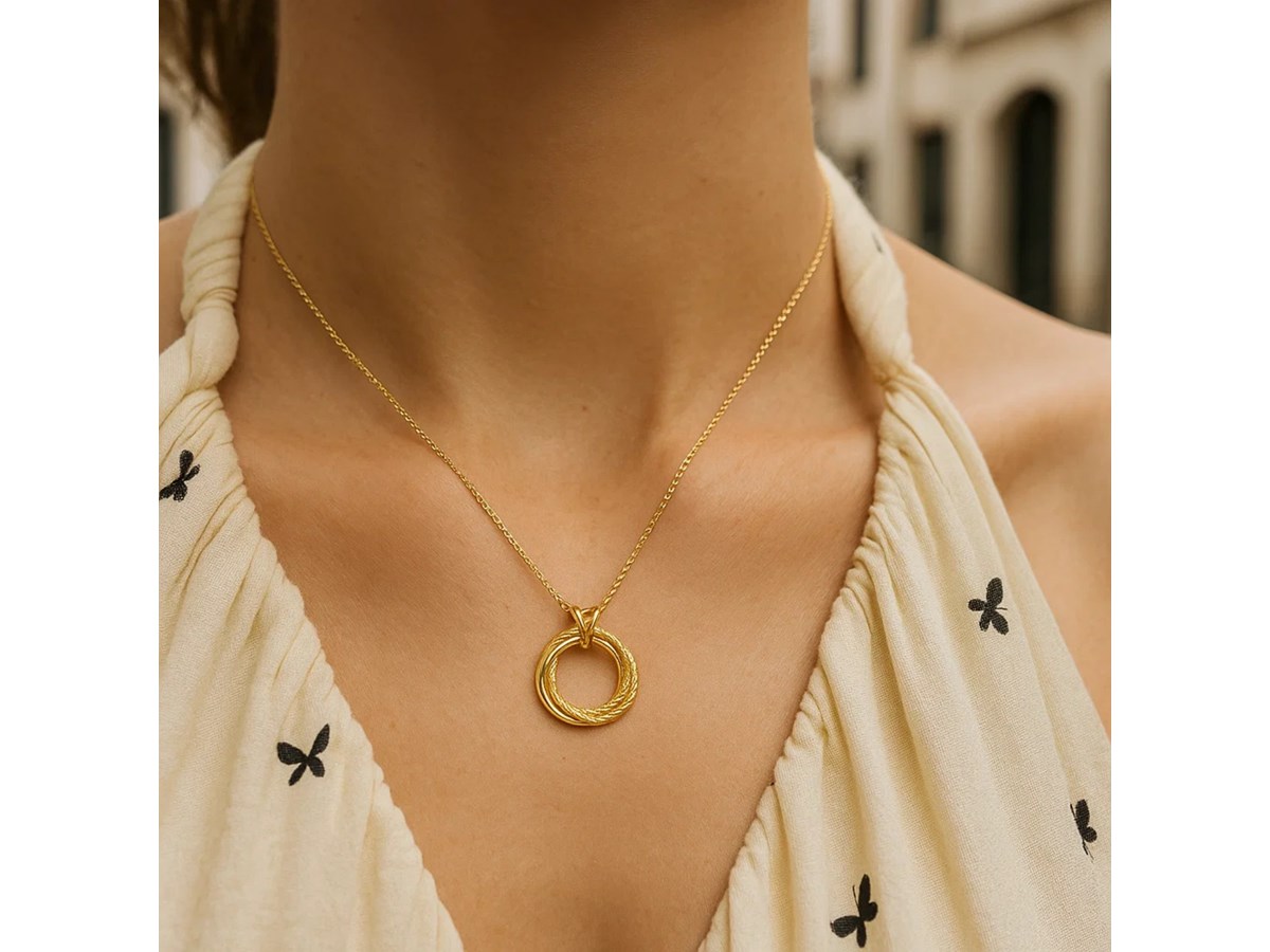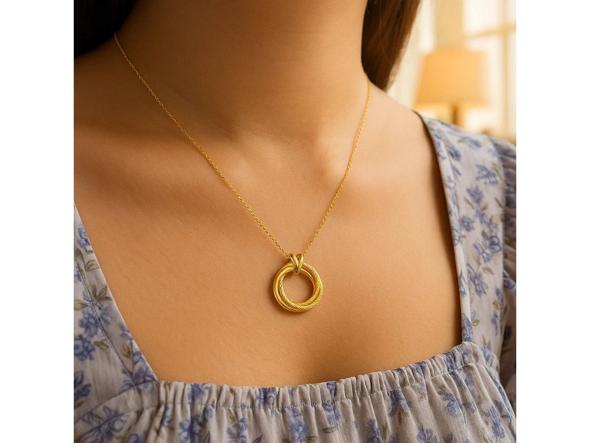 14K Yellow Gold Interlocking Diamond Cut Trinity Necklace