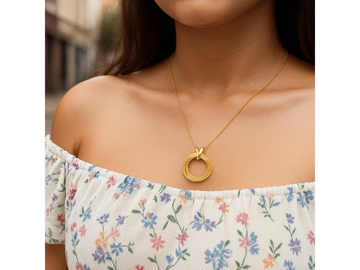Elevate your elegance with this 14K yellow gold necklace, featuring interlocking diamond-cut trinity circles. Measuring 18 inches, it secures with a lobster clasp, offering both style and comfort. This timeless piece adds sophistication to any ensemble, making it perfect for everyday wear or special occasions.