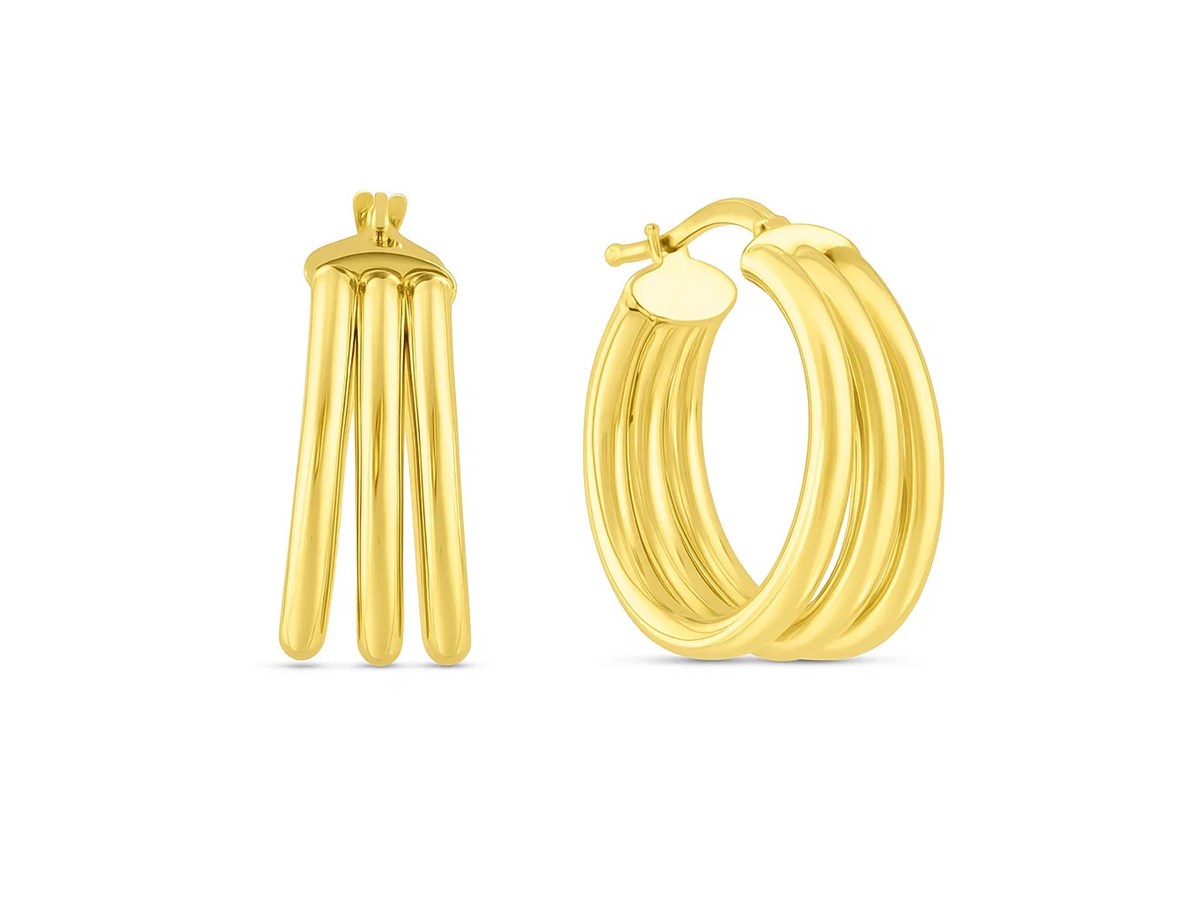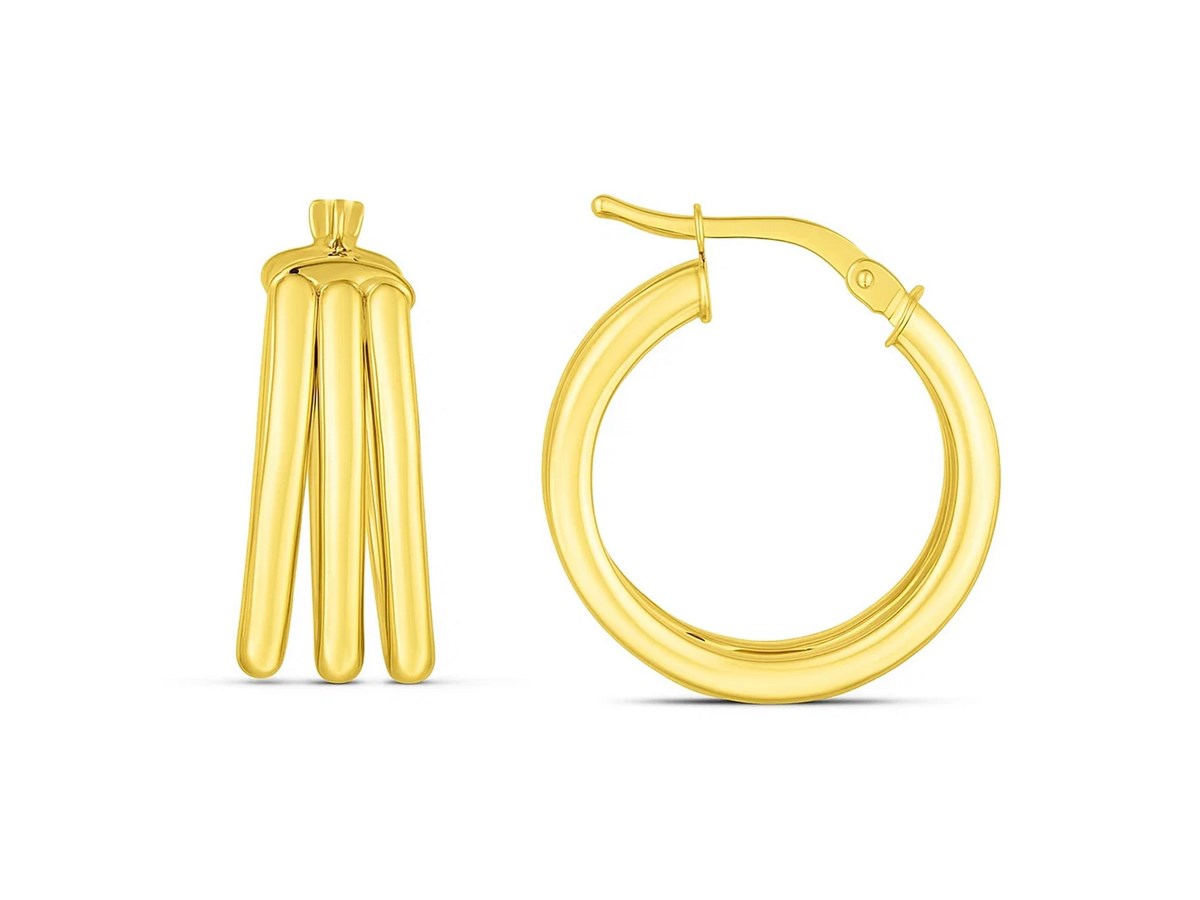 14K Yellow Gold Large Triple Row Hoop Earrings (15.00 mm)