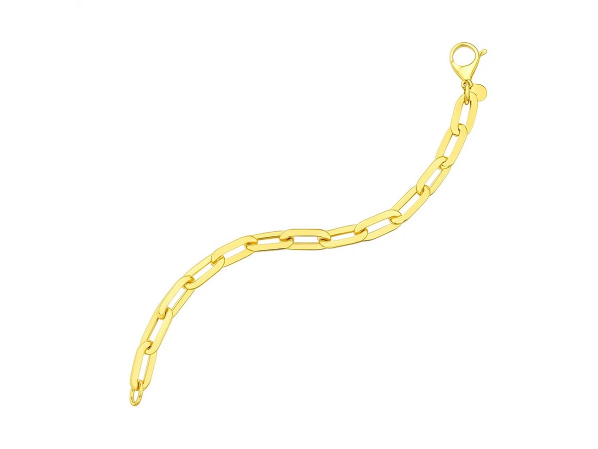 Elevate your style with our 14K Yellow Gold Long Mirror Rolo Link Chain Necklace. This exquisite piece features polished, elongated mirror rolo links that reflect light beautifully, creating a sophisticated and eye-catching accessory. Crafted from high-quality 14K yellow gold, it offers a luxurious shine that complements any ensemble. Available in 18 inches length secured with a reliable lobster clasp for comfortable wear. Perfect for layering or as a standalone statement, this necklace adds a touch of elegance to any jewelry collection.