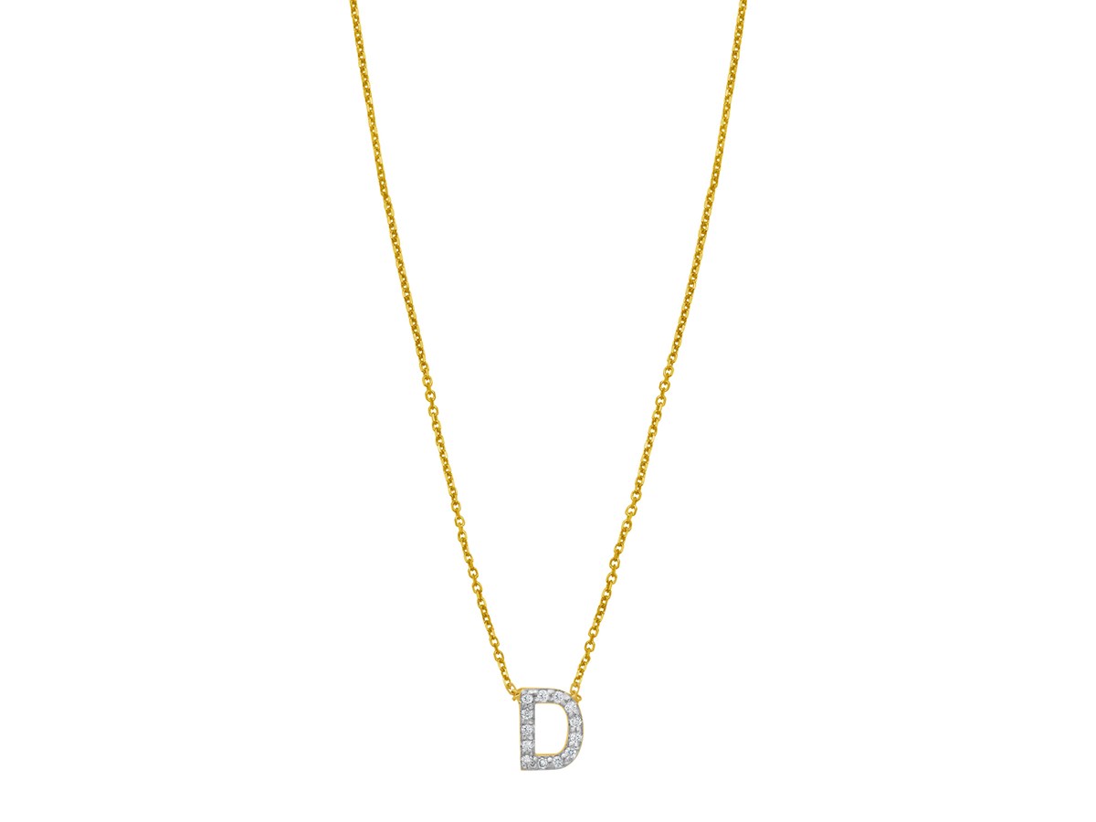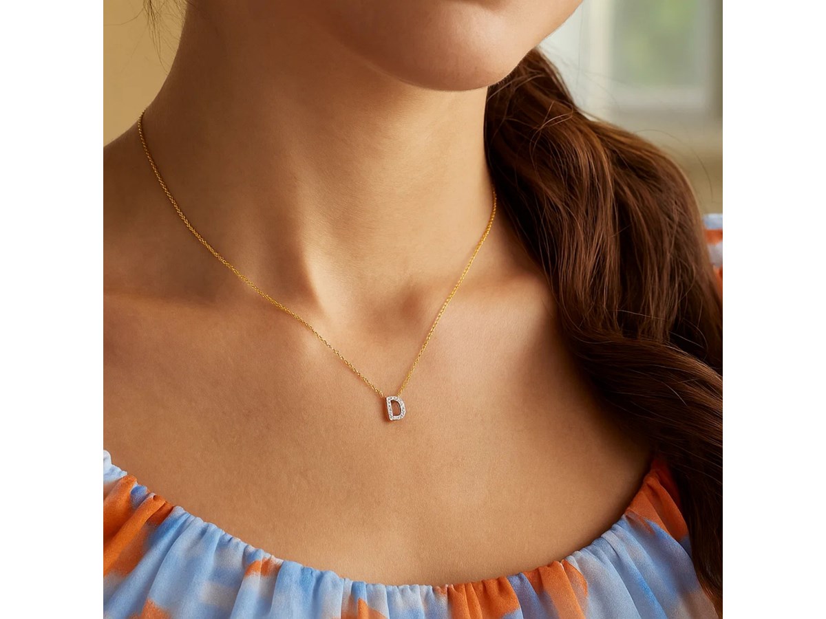 14K Yellow Gold Mini Diamond D Initial Pendant Necklace