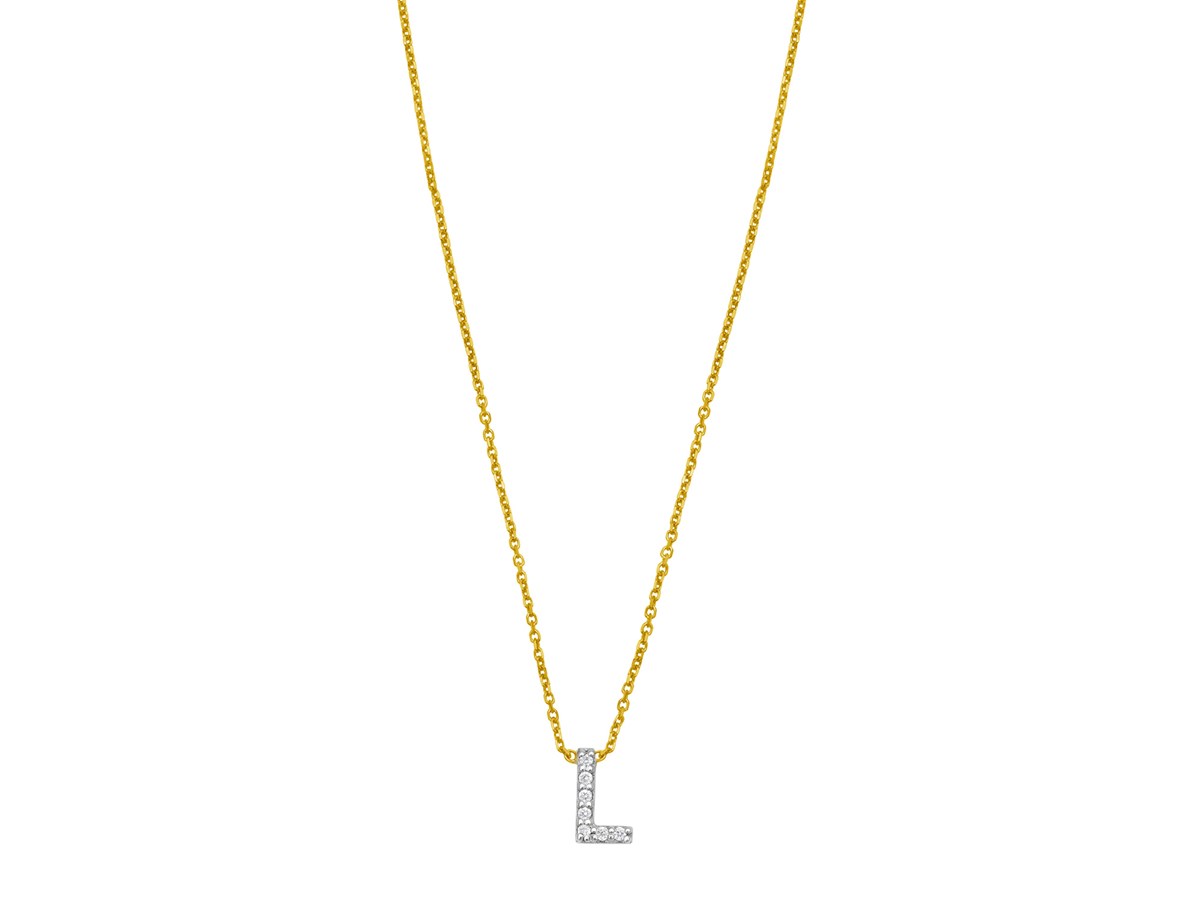 14K Yellow Gold Mini Diamond L Initial Pendant Necklace