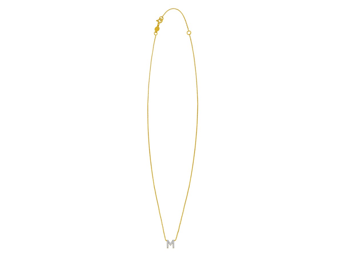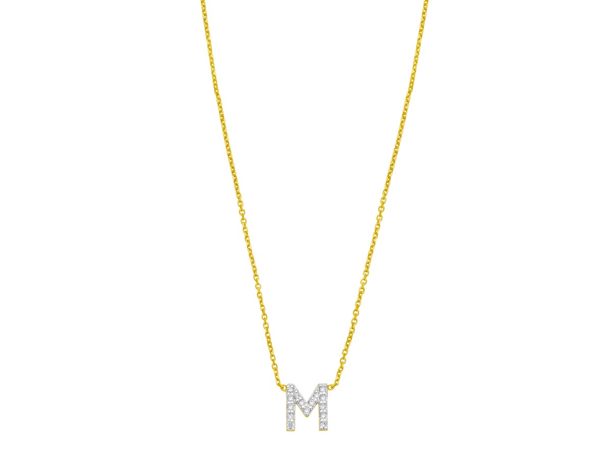 14K Yellow Gold Mini Diamond M Initial Pendant Necklace