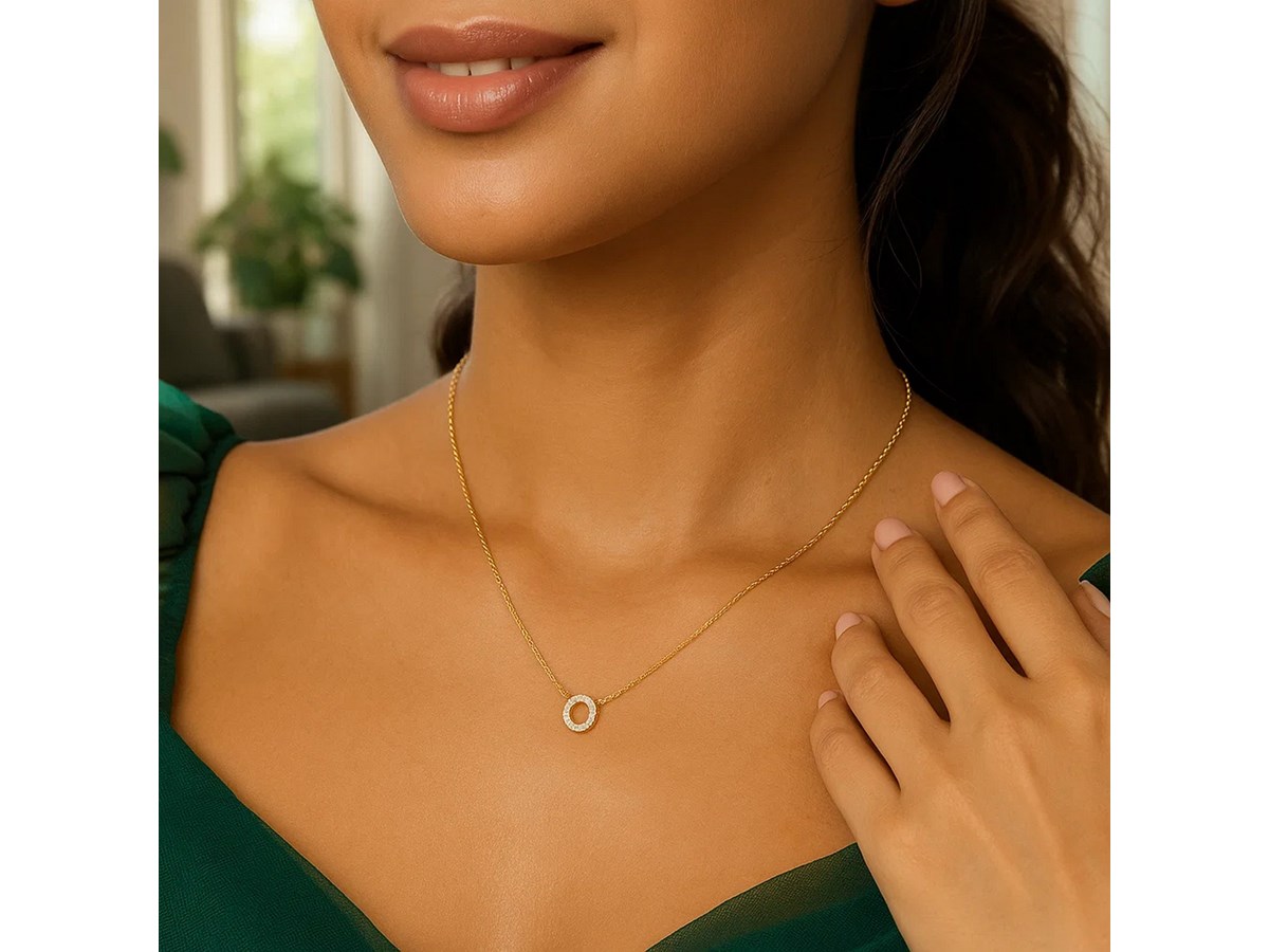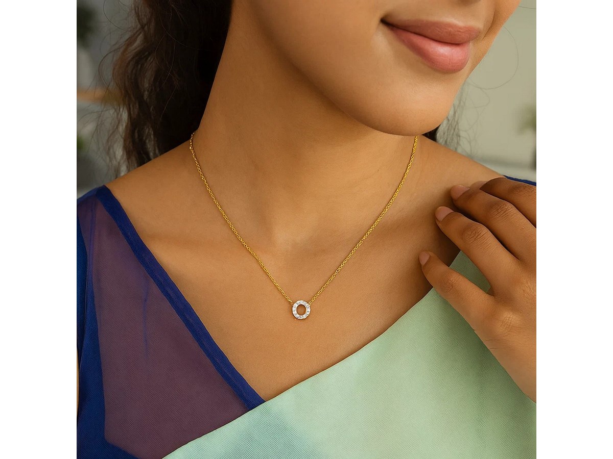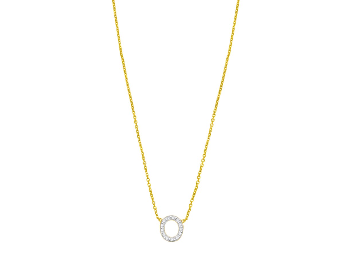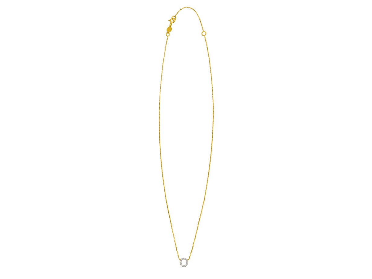 14K Yellow Gold Mini Diamond O Initial Pendant Necklace