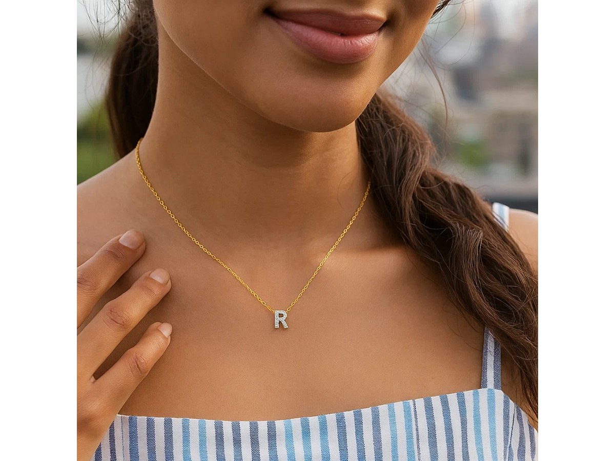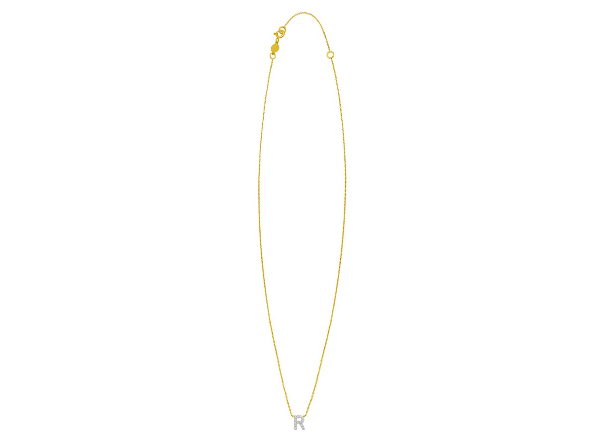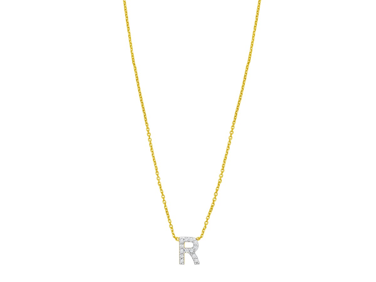 14K Yellow Gold Mini Diamond R Initial Pendant Necklace