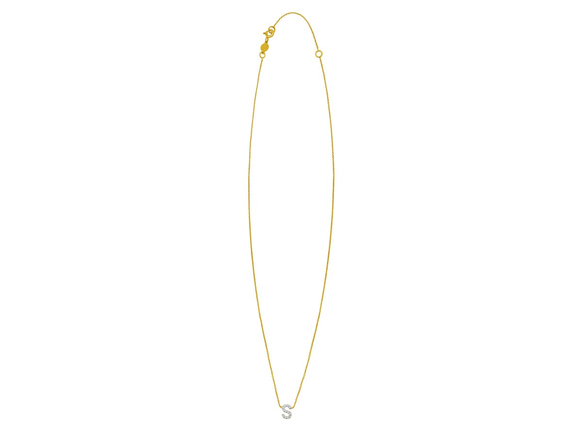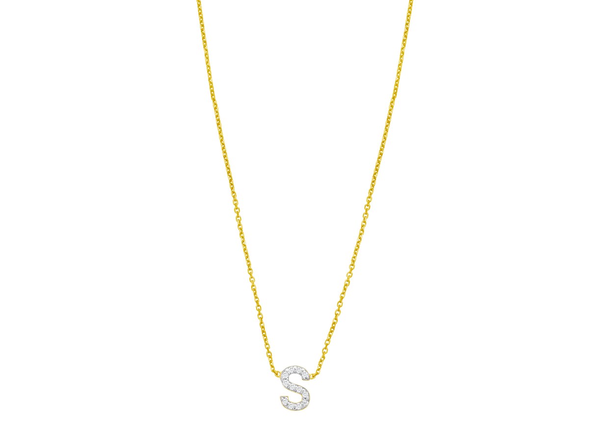 14K Yellow Gold Mini Diamond S Initial Pendant Necklace