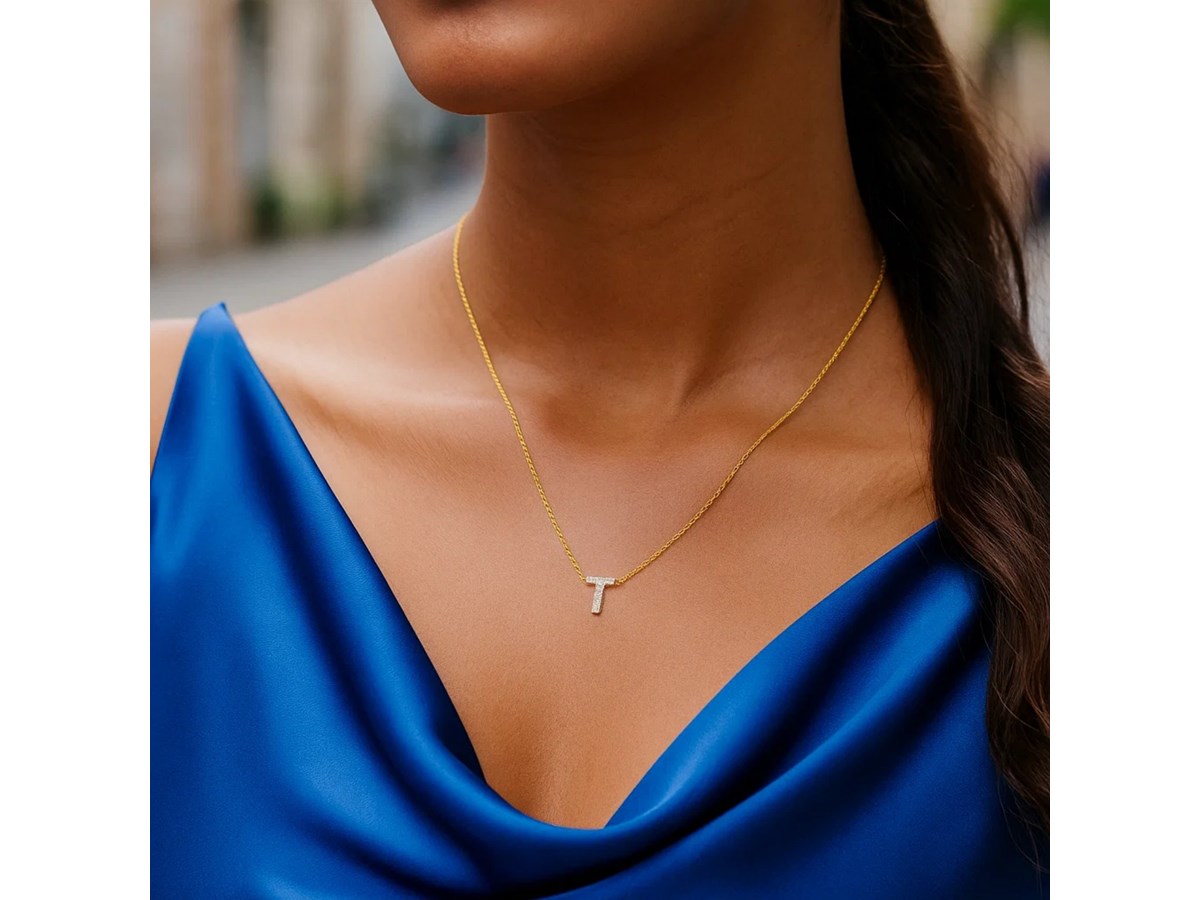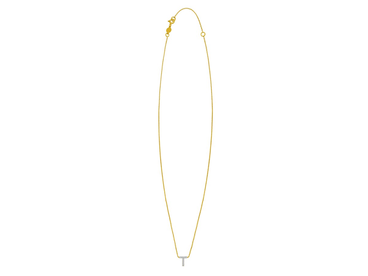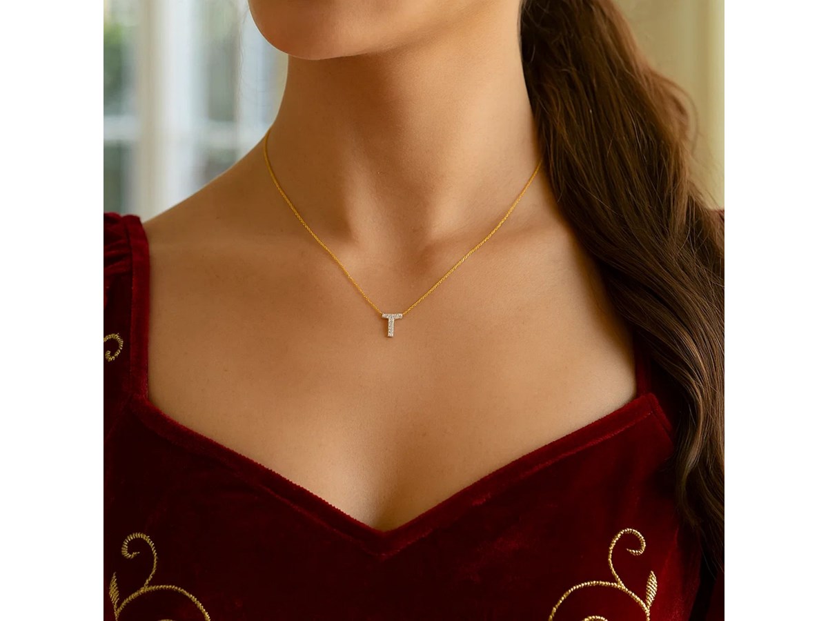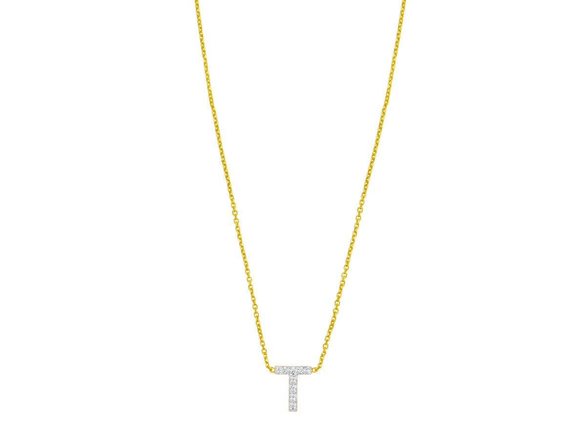 14K Yellow Gold Mini Diamond T Initial Pendant Necklace