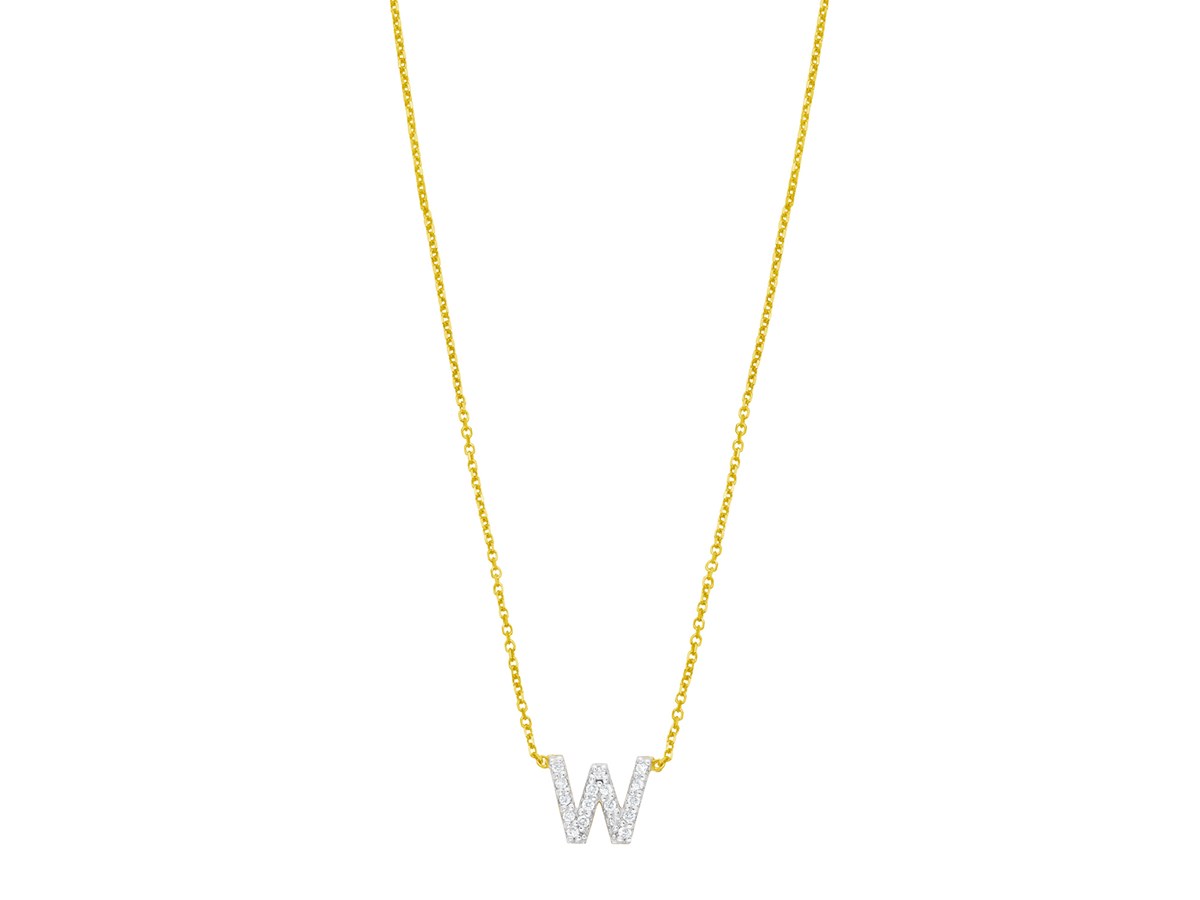 14K Yellow Gold Mini Diamond W Initial Pendant Necklace
