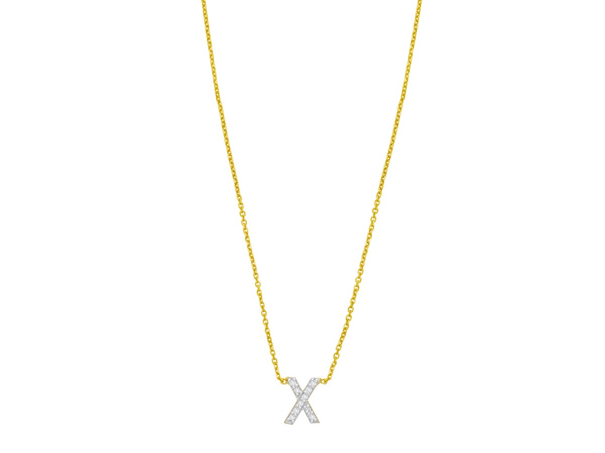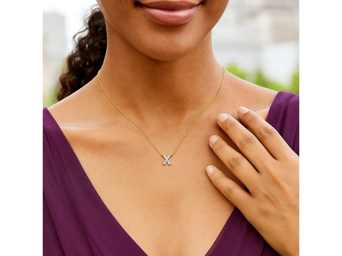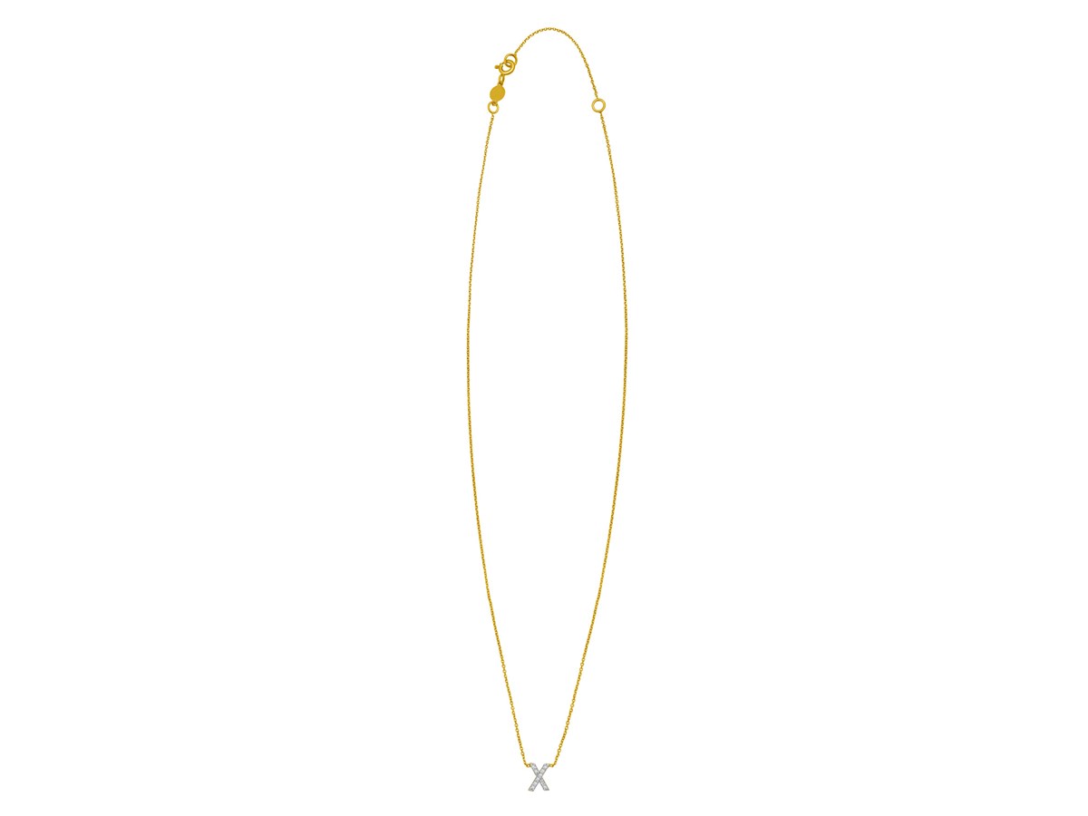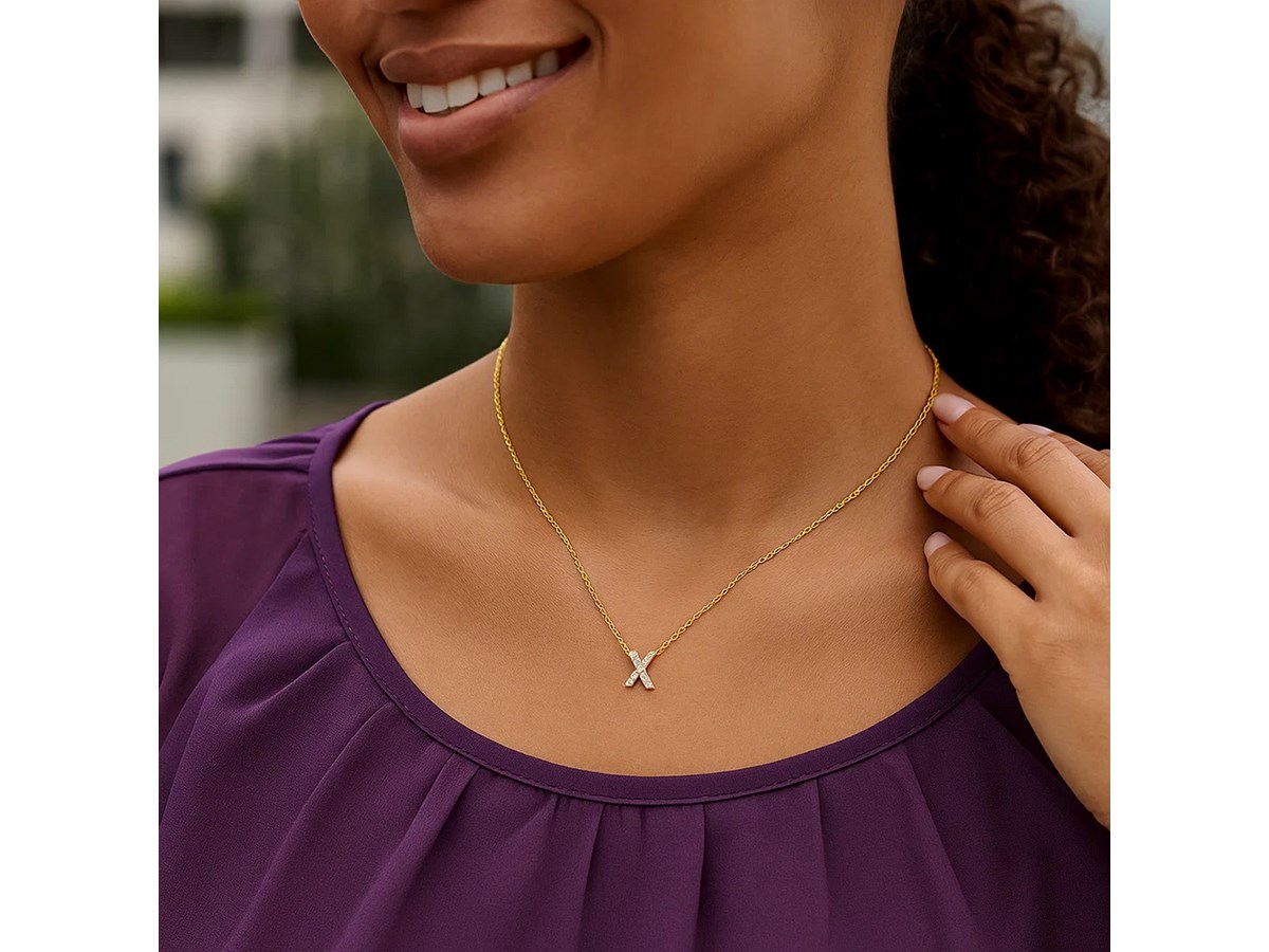 14K Yellow Gold Mini Diamond X Initial Pendant Necklace