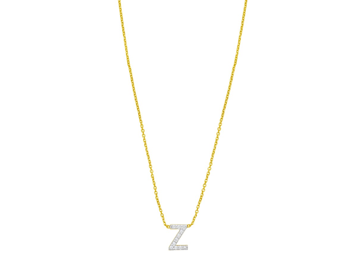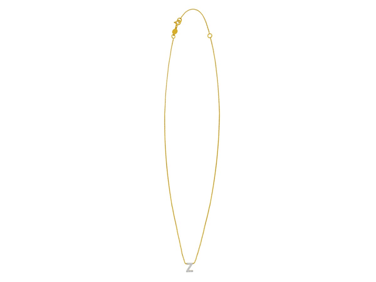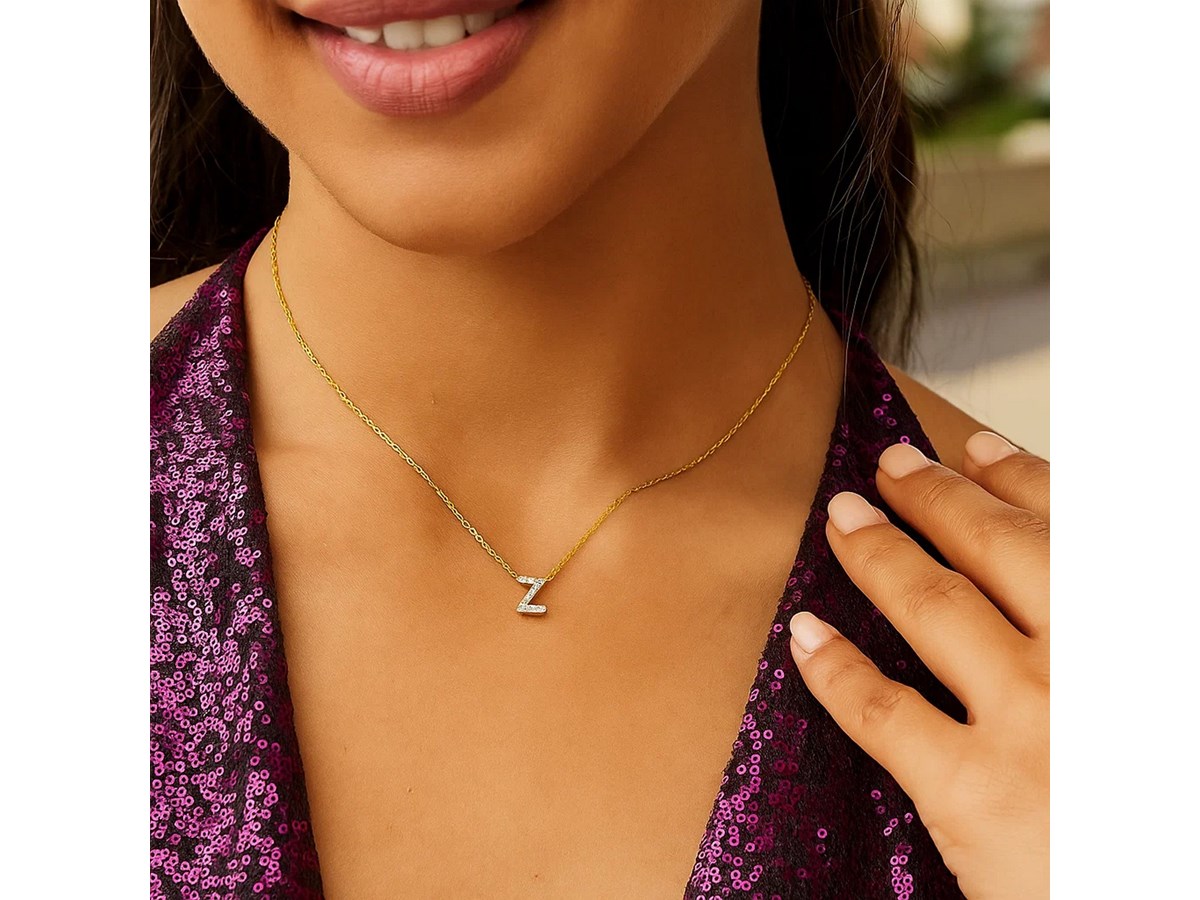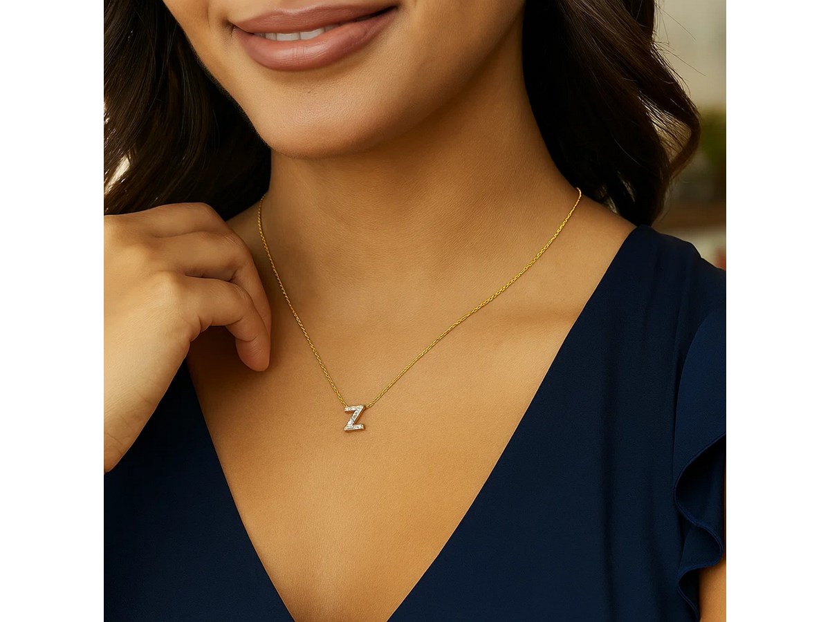 14K Yellow Gold Mini Diamond Z Initial Pendant Necklace