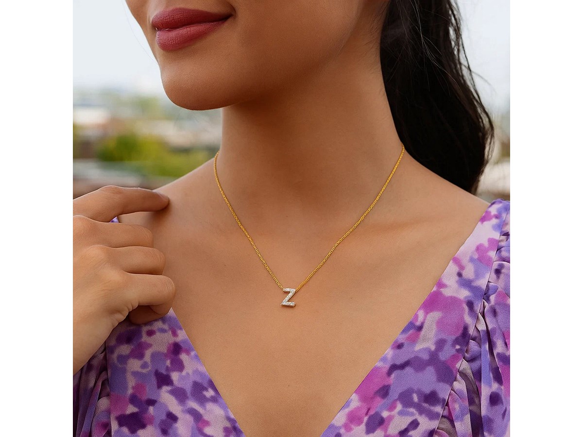 Celebrate individuality with this 14K yellow gold mini diamond Z initial pendant. Adorned with sparkling round diamonds, this dainty yet elegant piece adds a personal touch to any look. Perfect for everyday wear or as a thoughtful gift, it comes with an 18 inches chain and a secure spring ring clasp for lasting beauty and comfort.