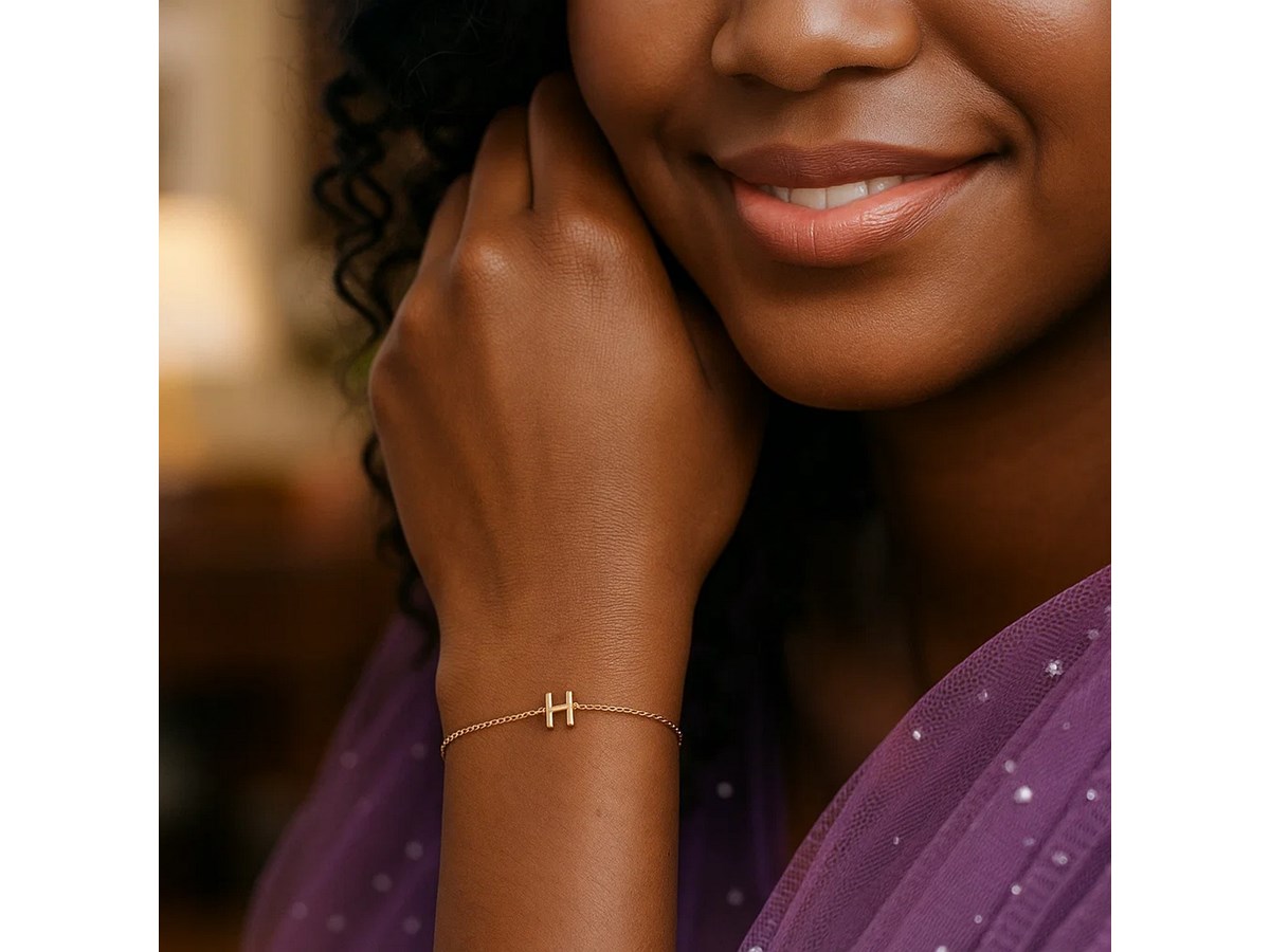 This 14K yellow gold mini initial H bracelet features a dainty polished letter charm on a delicate chain, adding a simple, personal touch. Perfect for everyday wear, thoughtful gifting, or layering with your favorite bracelets