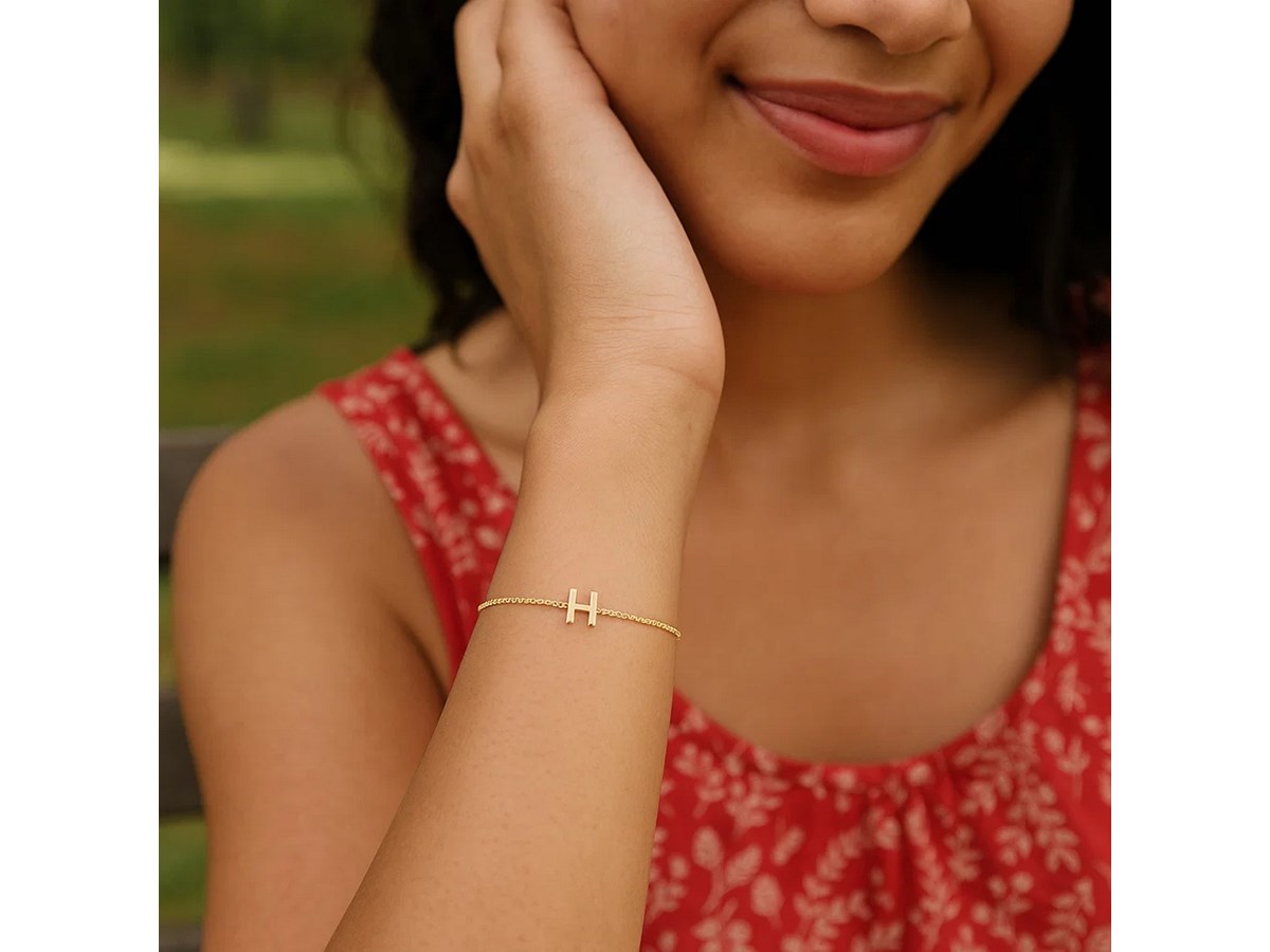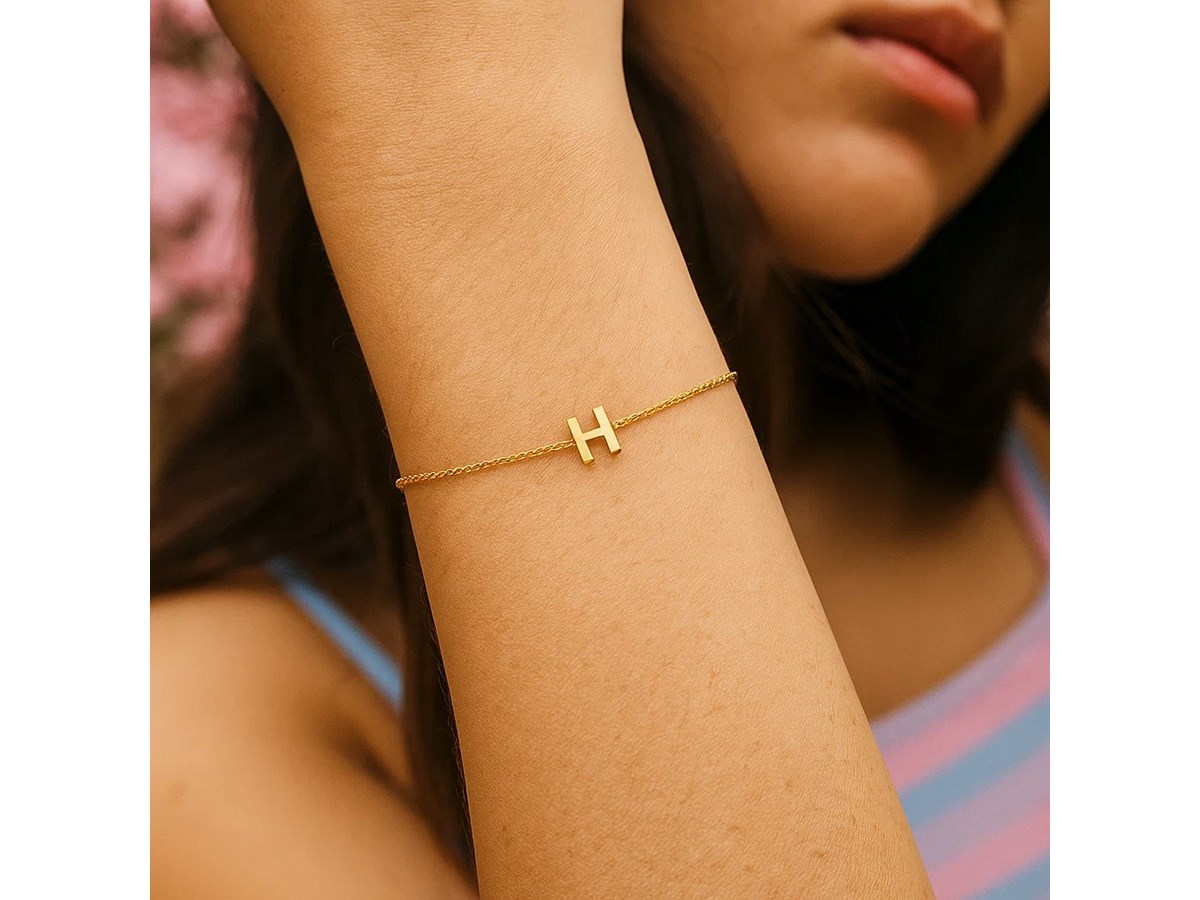 14K Yellow Gold Mini Initial H Bracelet