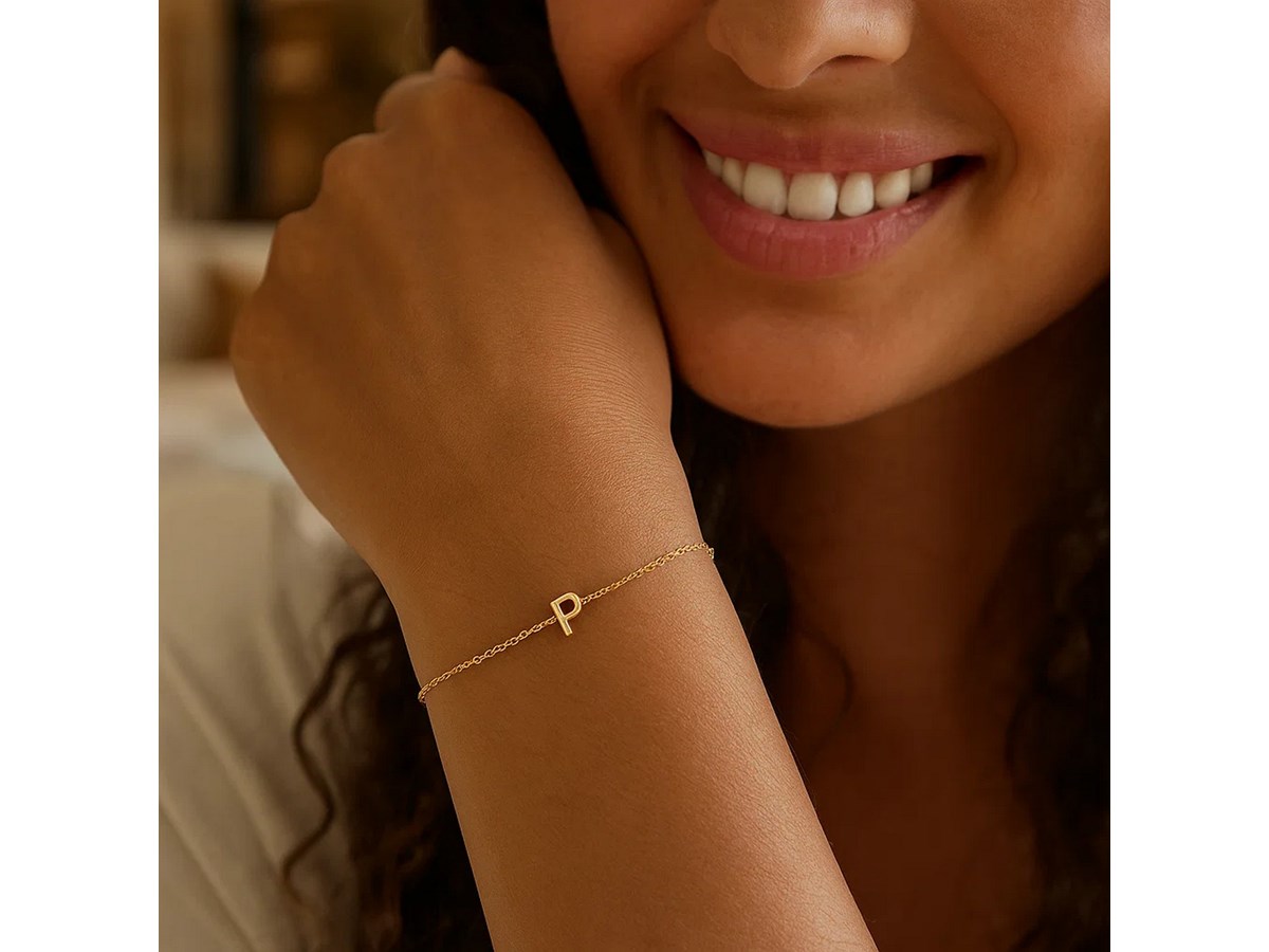 Delicate and personal, this 14K Yellow Gold Mini Initial P Bracelet adds effortless elegance to any look. Crafted in solid gold with a sleek minimalist design, it’s perfect for layering or daily wear and makes a meaningful gift or timeless keepsake.
