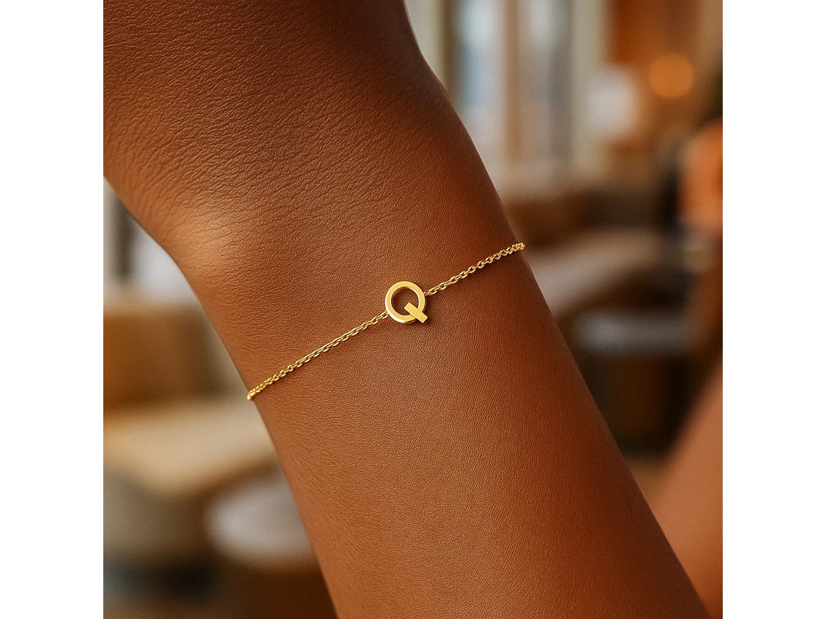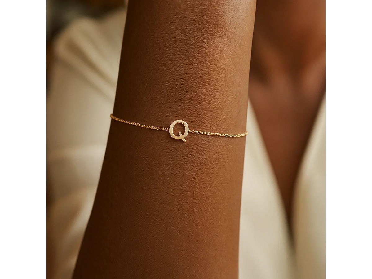 Delicate and meaningful, this 14K Yellow Gold Mini Initial Q Bracelet adds a touch of refined elegance to any style. Crafted in solid gold with a chic minimalist design, it’s perfect for everyday wear or layering and makes a thoughtful, personalized gift or timeless keepsake.