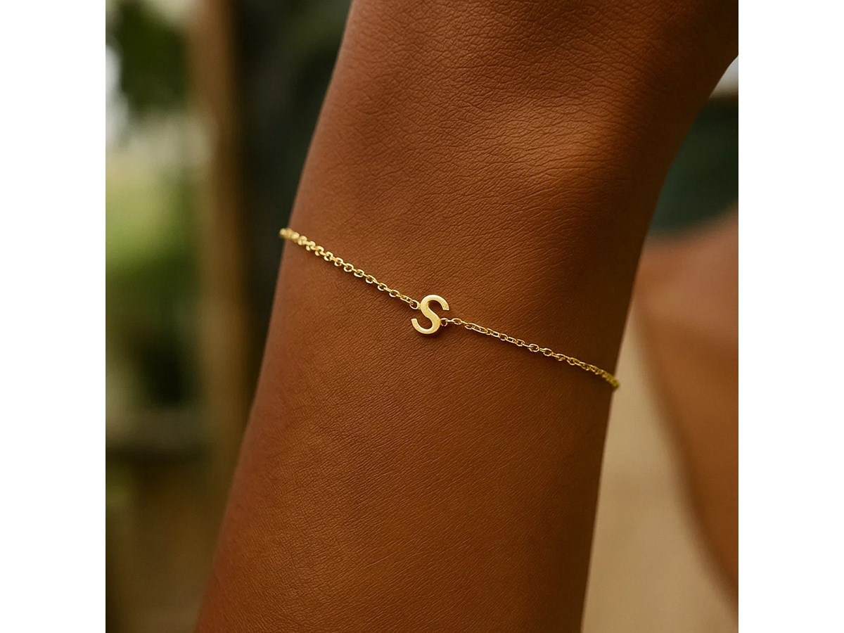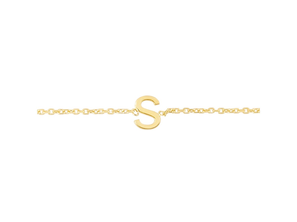 Delicate and stylish, this 14K Yellow Gold Mini Initial S Bracelet brings a touch of personal charm to any look. Crafted in solid gold with a sleek minimalist design, it’s perfect for layering or everyday wear and makes a thoughtful, meaningful gift or timeless keepsake.