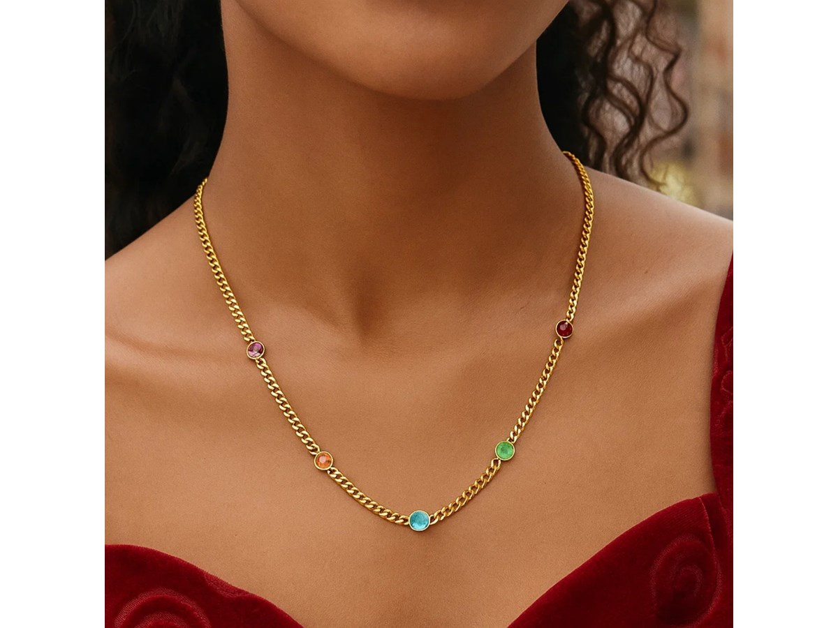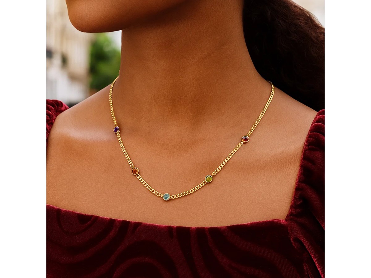 14K Yellow Gold Multi Gemstone Curb Chain Necklace