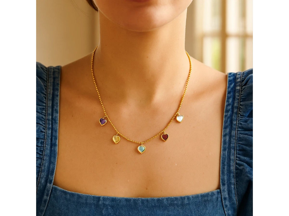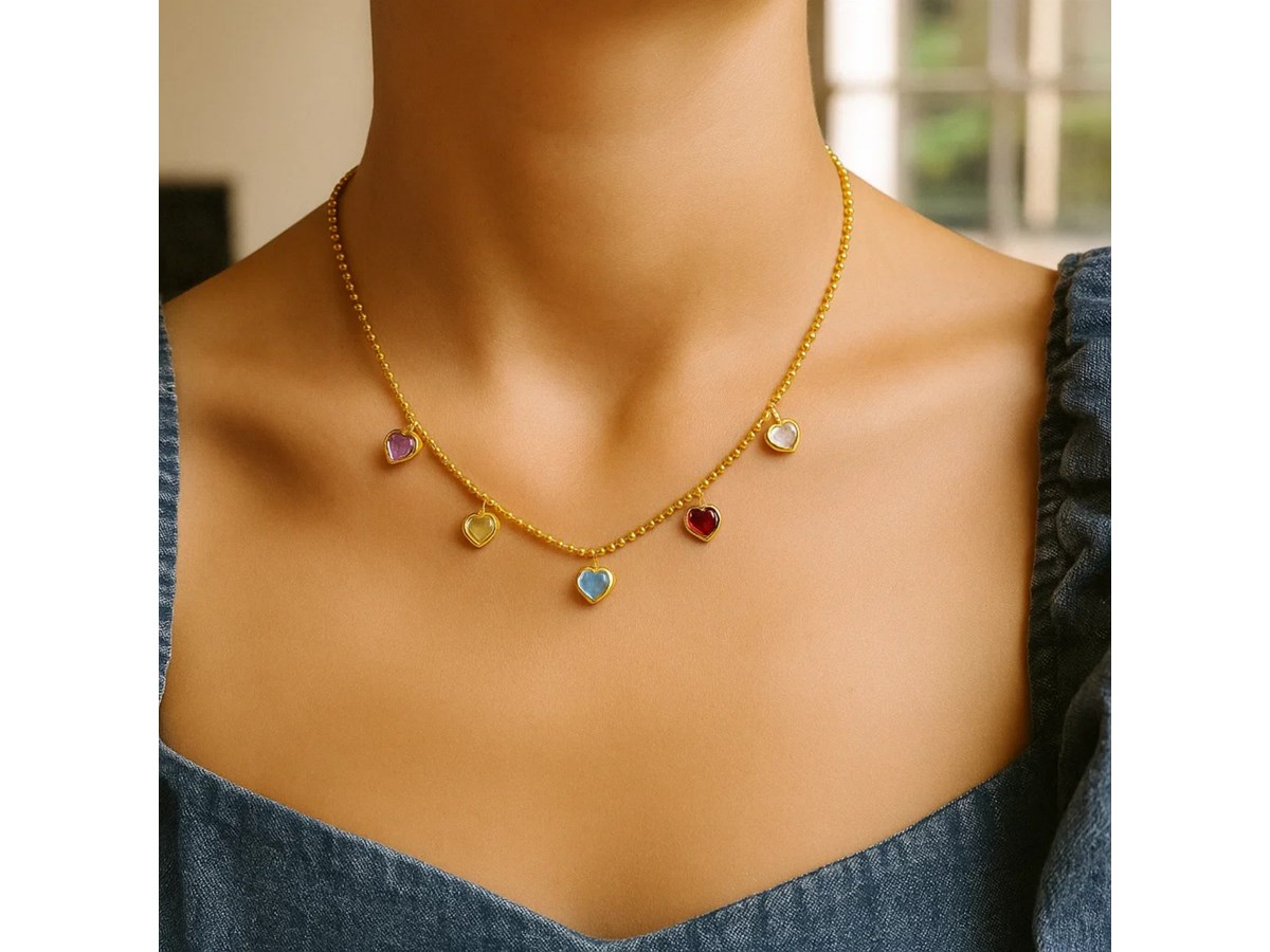 14K Yellow Gold Multi Gemstone Heart Necklace (1.50 mm)