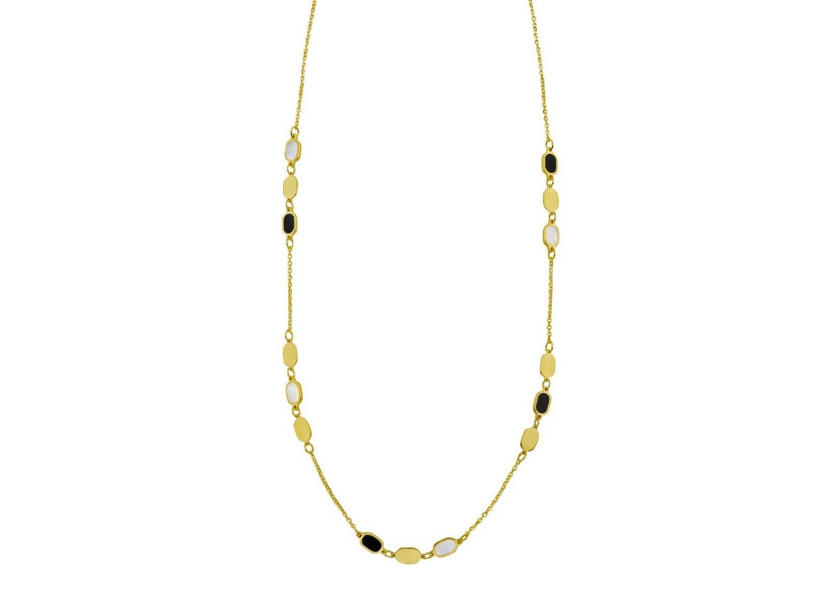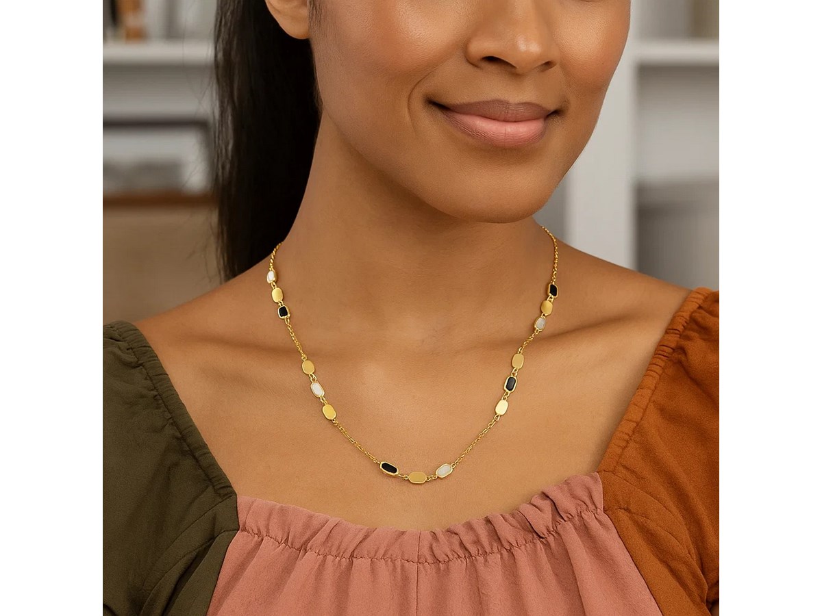 14K Yellow Gold Onyx And MOP Inlay Links Necklace