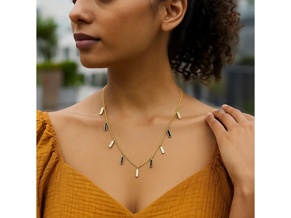 14K Yellow Gold Onyx And MOP Inlay Station Necklace
