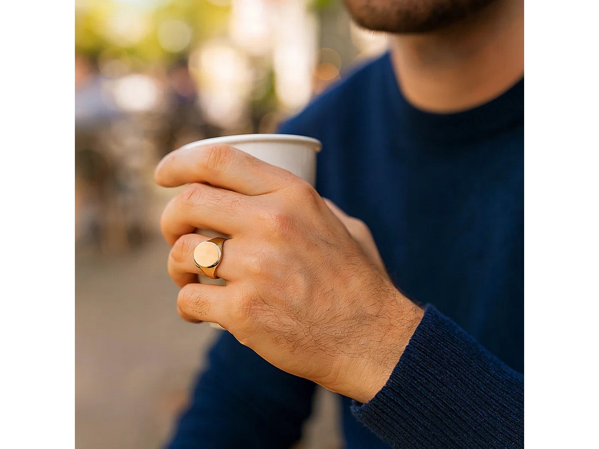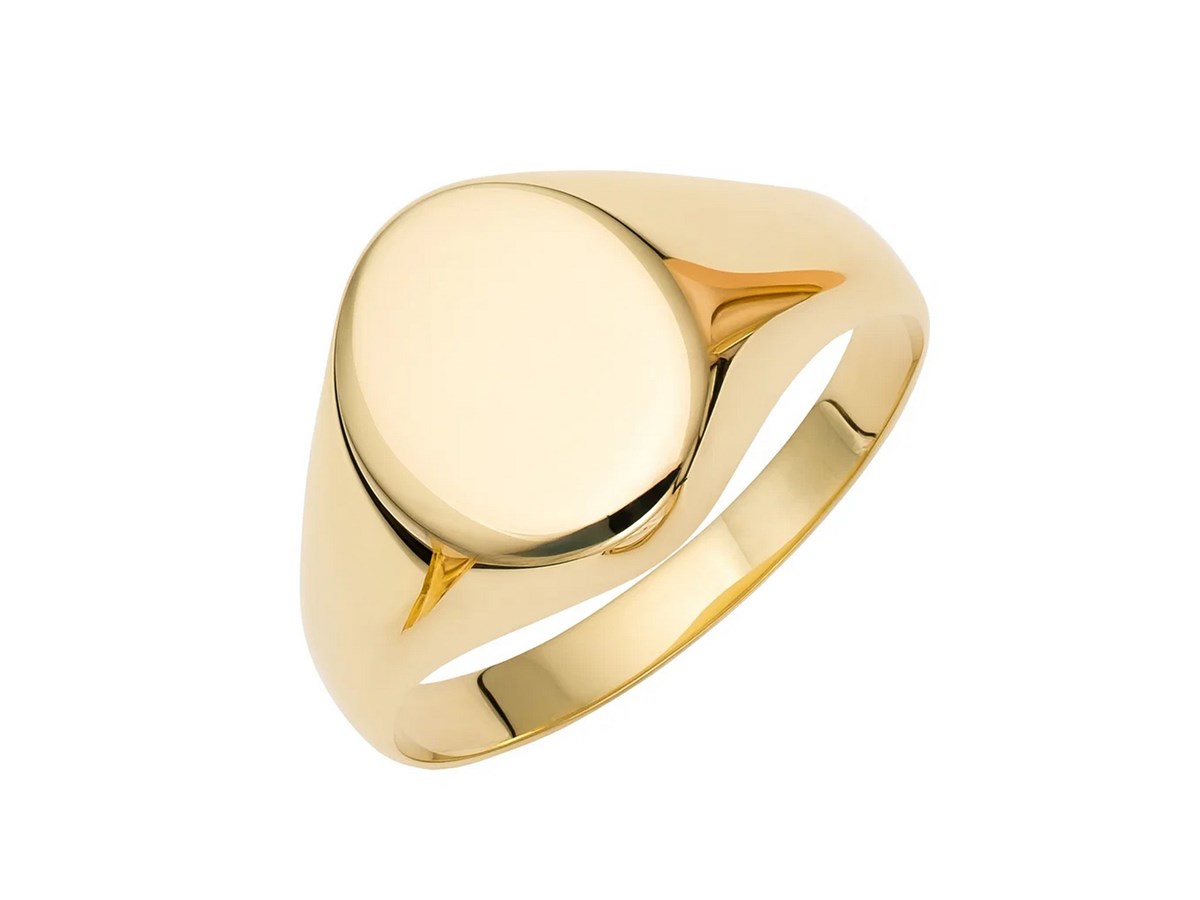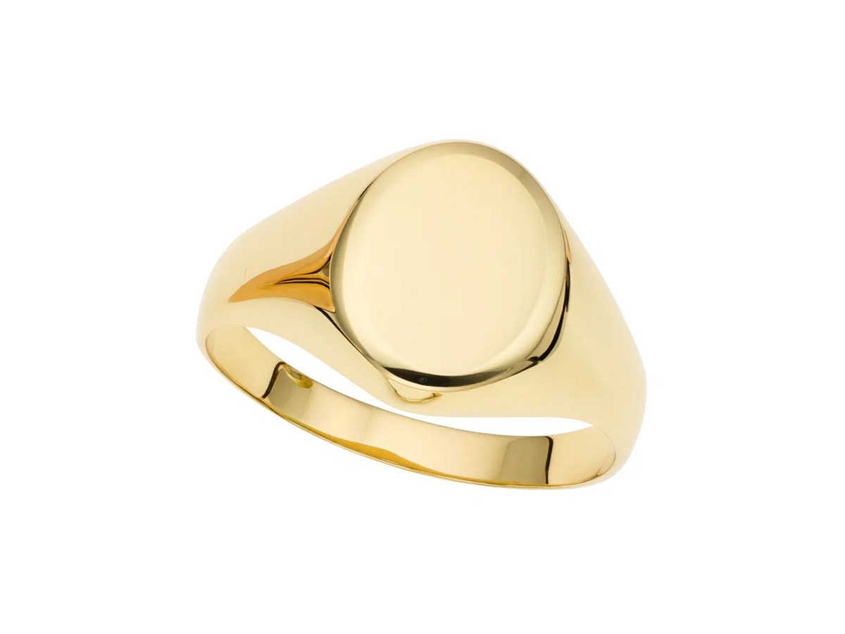 14K Yellow Gold Oval Satin Signet Ring crafted in solid 14K yellow gold with a satin-finished oval top. The smooth, tapered band offers a classic, refined look ideal for everyday wear or personal engraving.