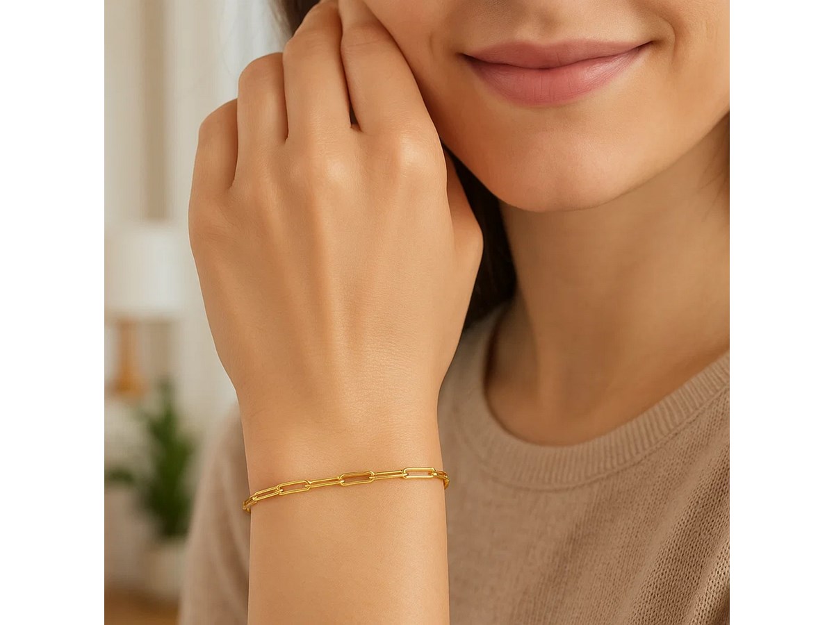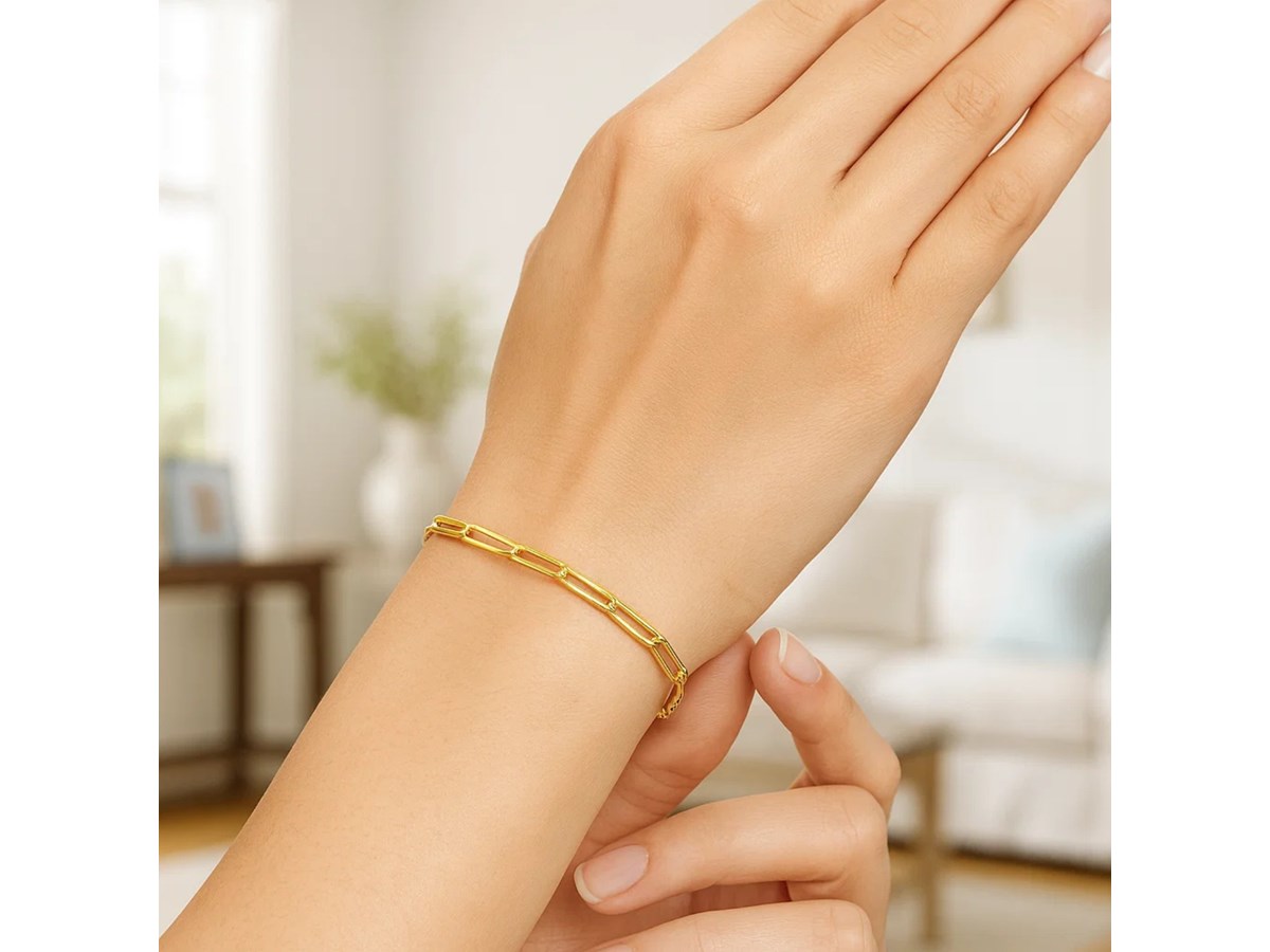Bright 14K yellow gold is the star of this exquisite contemporary paperclip bracelet. Bracelet has 2.5mm wide links and closes with a lobster clasp.