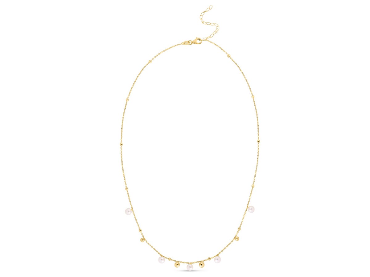 14K Yellow Gold Pearl and Scattered Bead Necklace