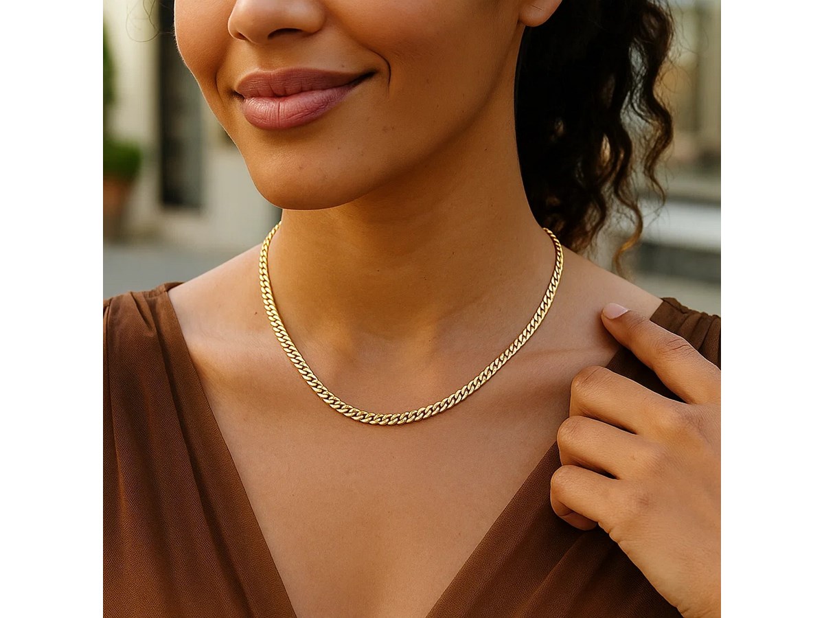14K Yellow Gold Petite Faceted Cuban Link Chain Necklace (4.50 mm)
