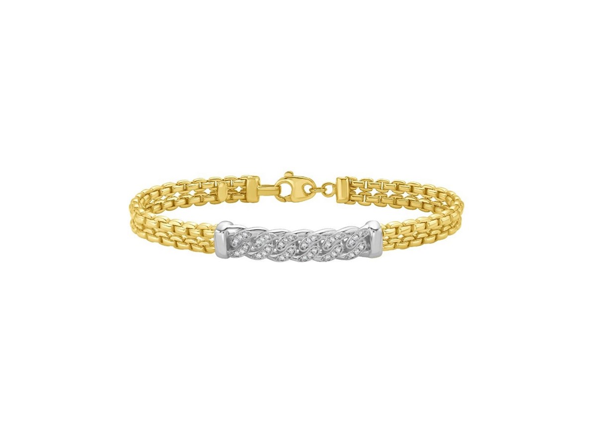 Luxurious 14K yellow gold Venetian link bracelet featuring a sleek polished finish and a .31ct diamond pavé curb bar centerpiece. This refined design blends timeless elegance with modern brilliance, perfect for both everyday sophistication and special occasions.