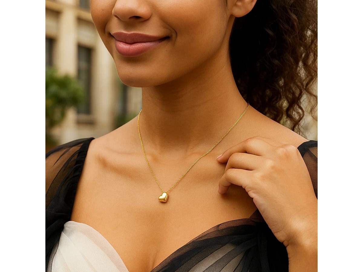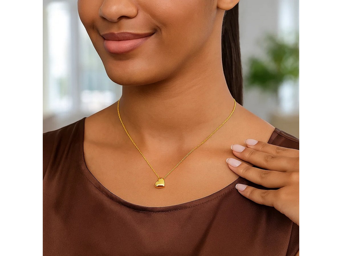 14K Yellow Gold Puffed Mini Heart Pendant Necklace