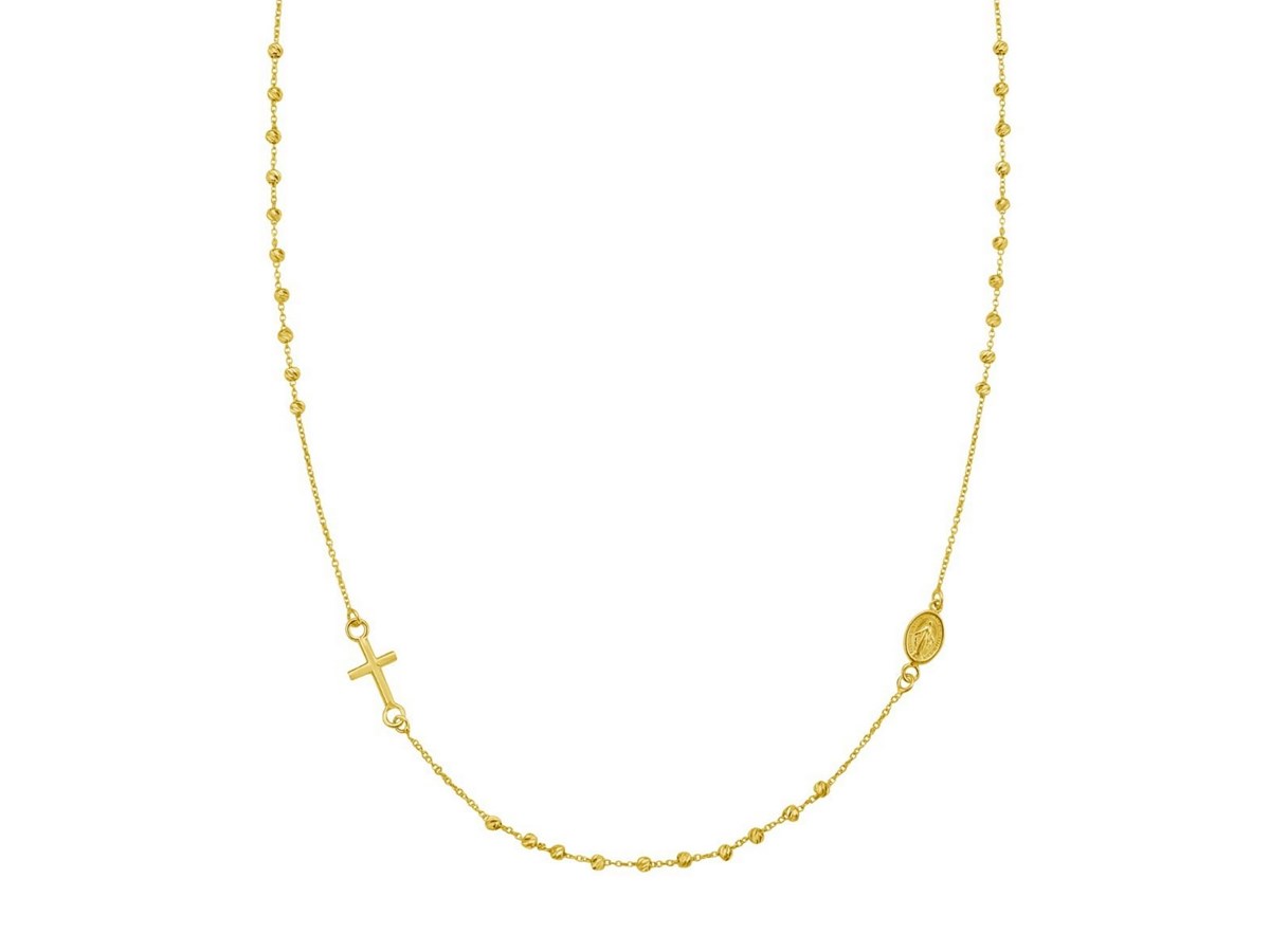 Embrace your faith with this exquisite 14K yellow gold rosary necklace. Measuring 17 inches in length, it features a classic design with a spring ring clasp for secure wear. This timeless piece is perfect for daily devotion or as a meaningful gift for a loved one. Expertly crafted to ensure lasting beauty, it adds a touch of elegance to any ensemble.