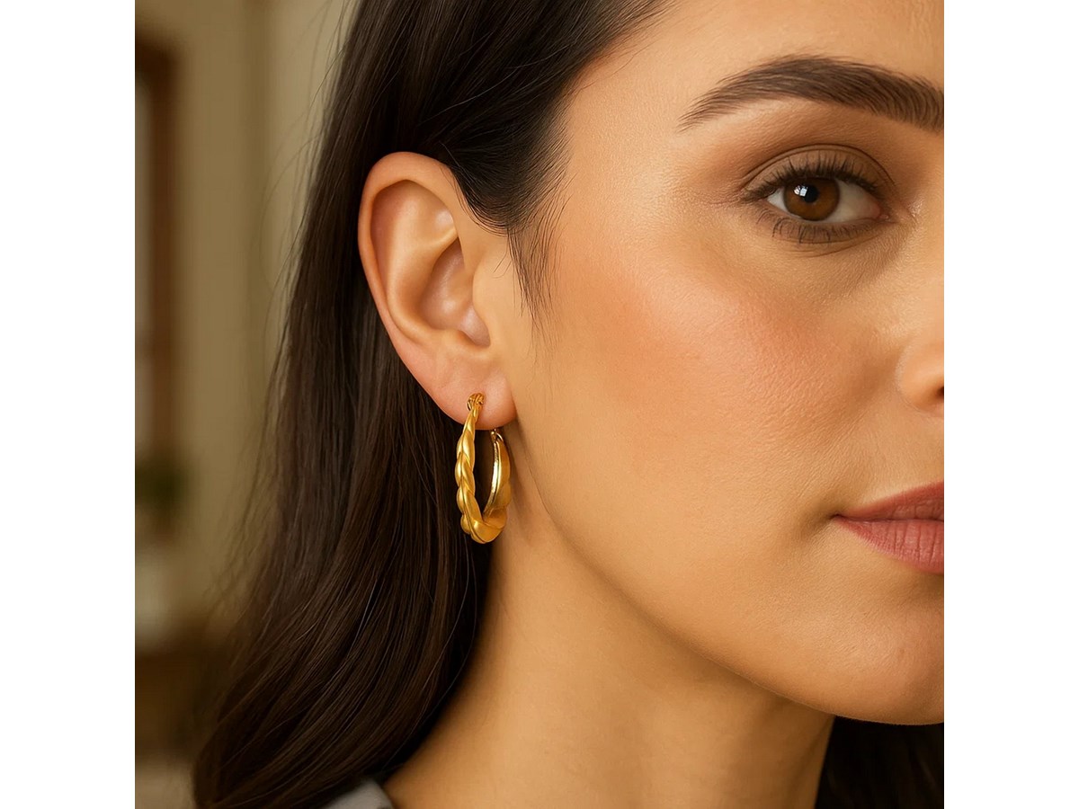 14K Yellow Gold Round Back to Back Hoop Earrings