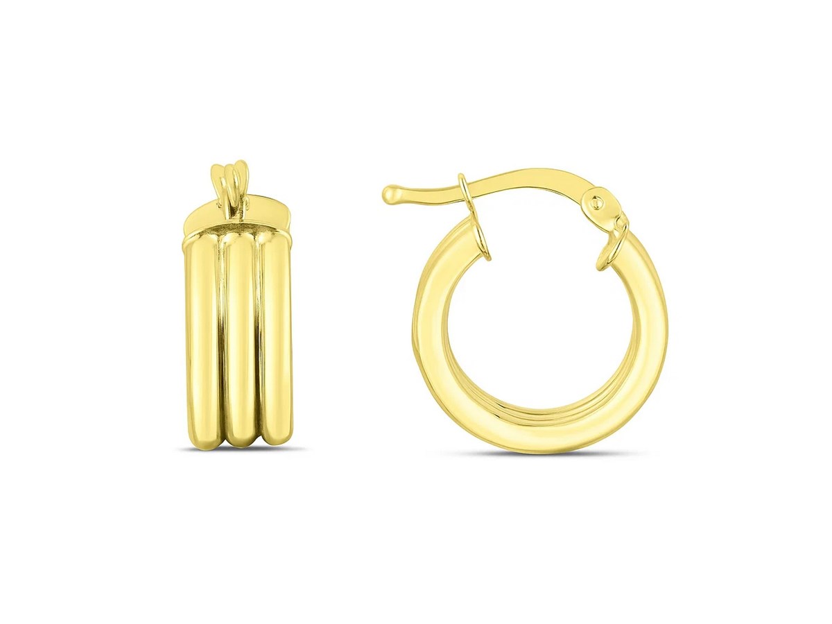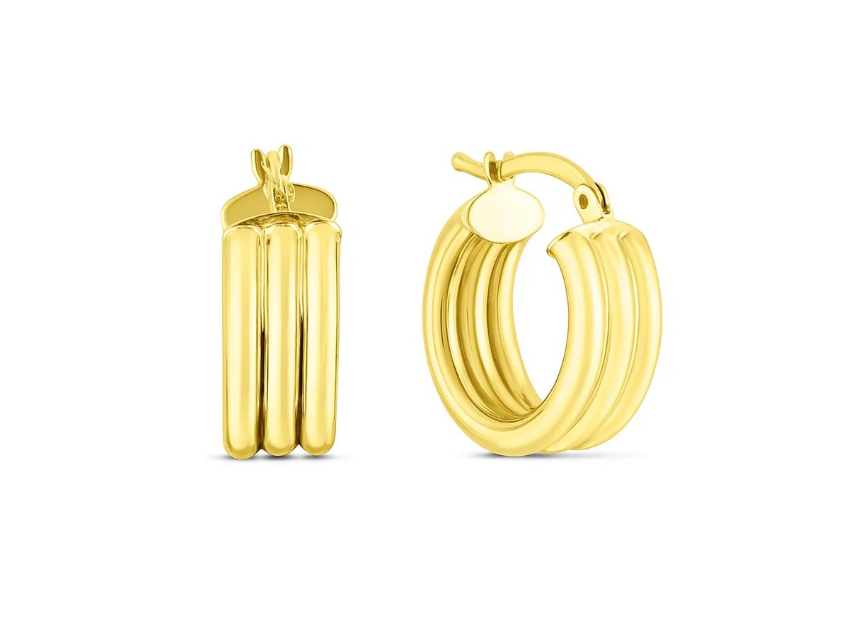 14K Yellow Gold Small Triple Row Round Hoop Earrings (10.00 mm)
