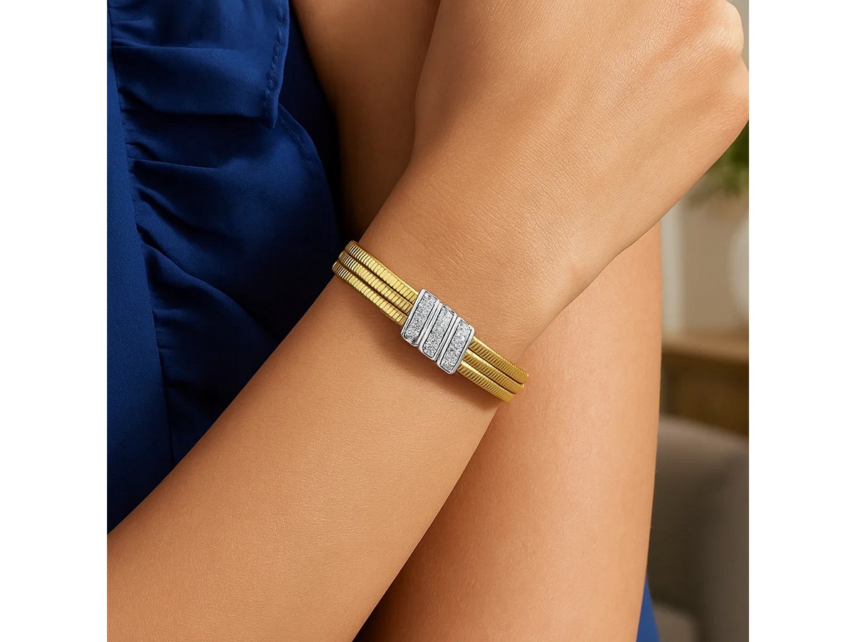 14K Yellow Gold Triple Row Diamond Omega Cuff Bangle