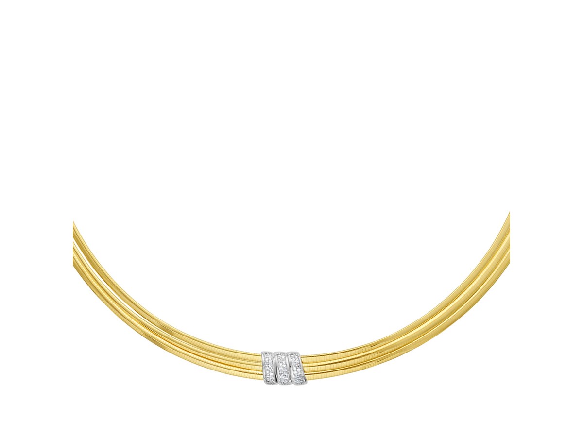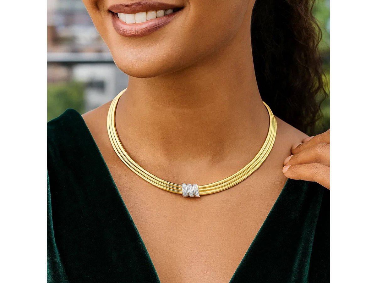 14K Yellow Gold Triple Row Diamond Omega Necklace