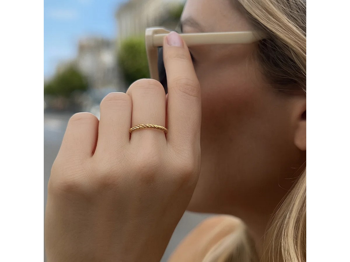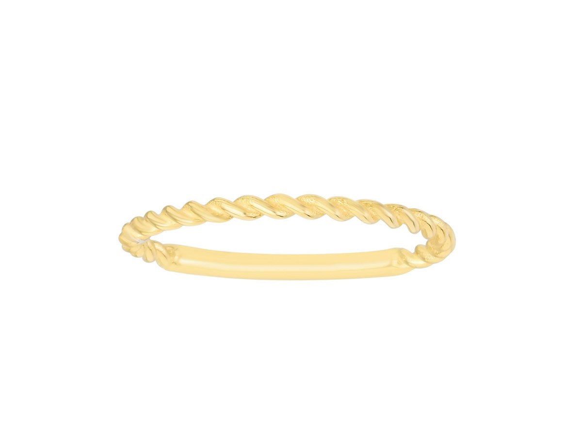 14K Yellow Gold Twisted Stackable Ring featuring an elegant twisted design crafted in solid 14K yellow gold. Its slim profile makes it perfect for stacking or adding a subtle touch of texture to any jewelry combination.