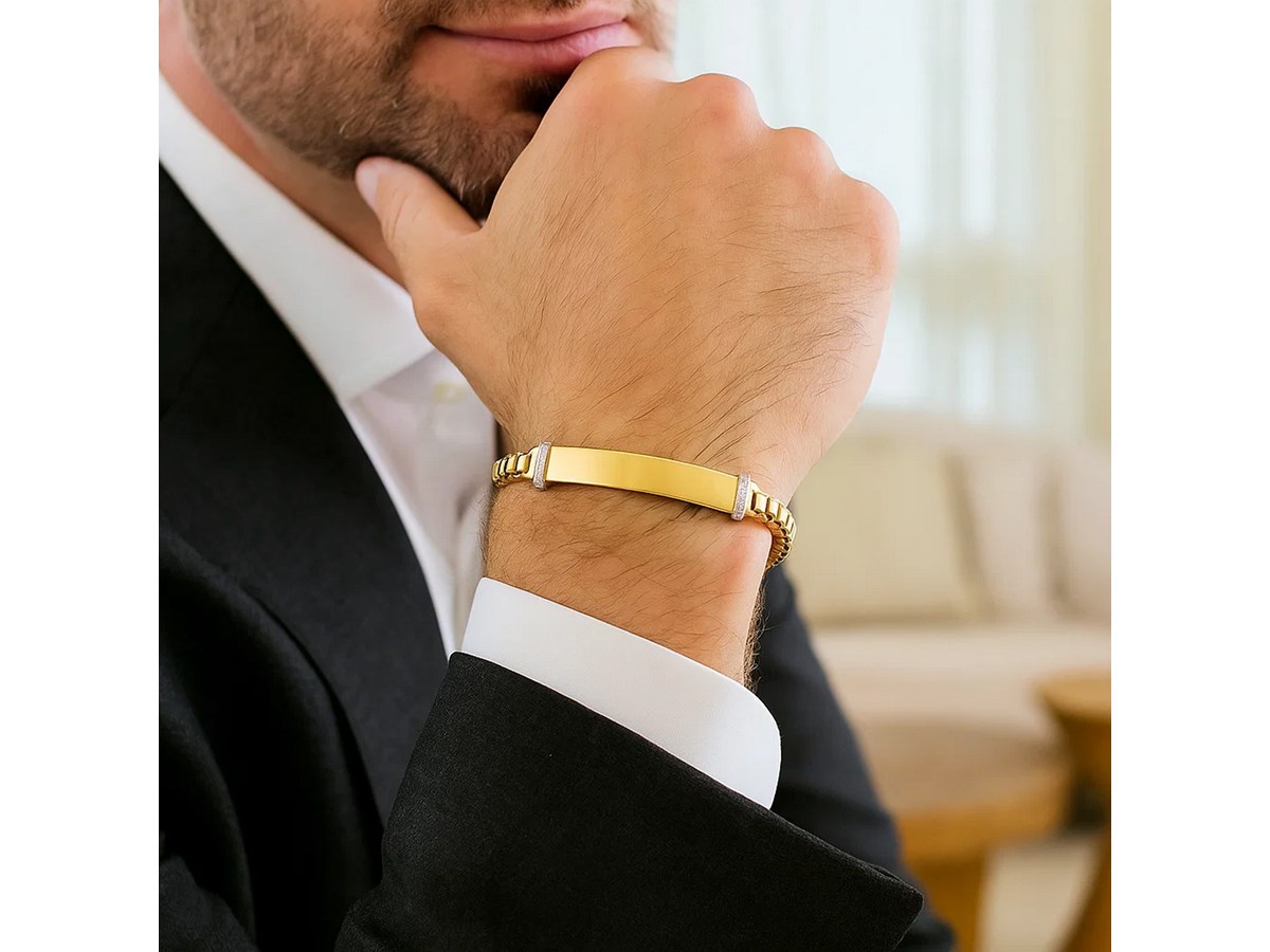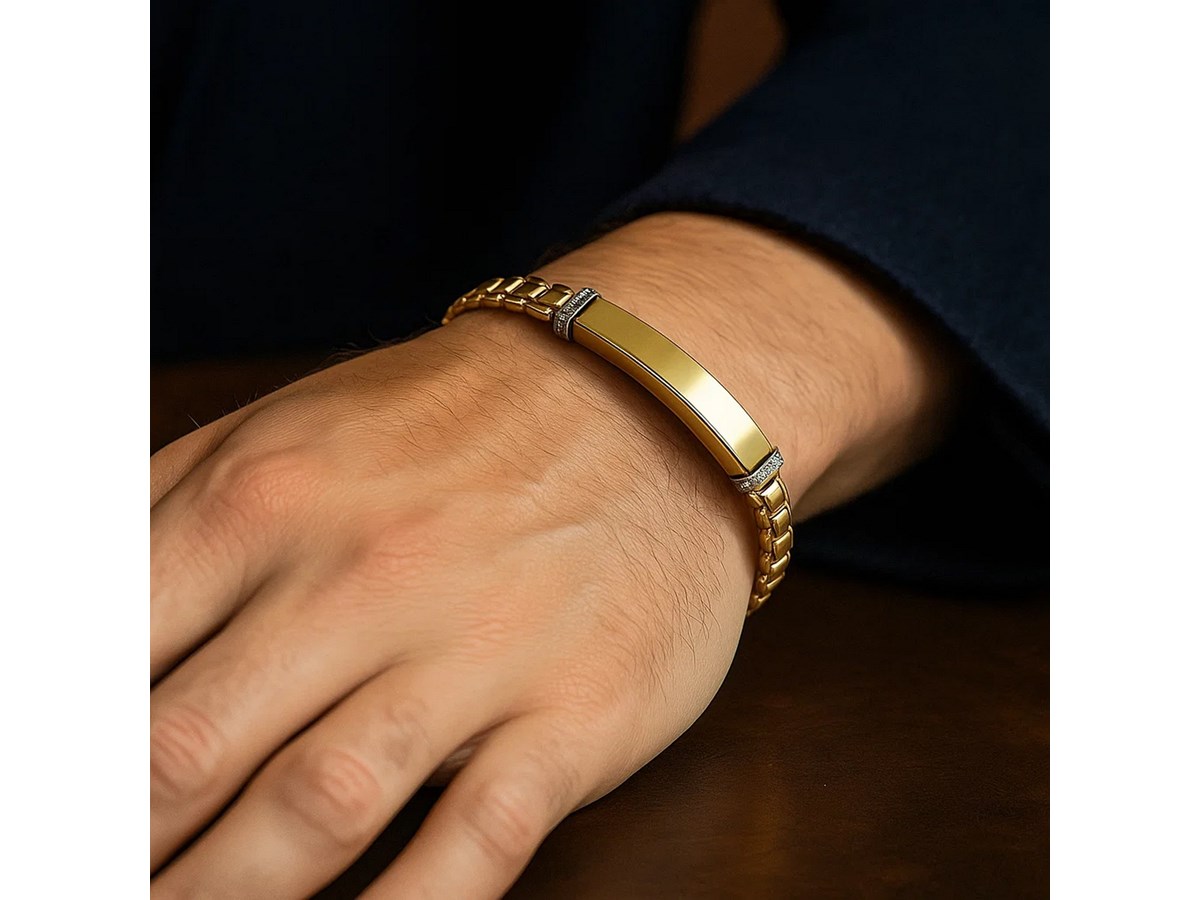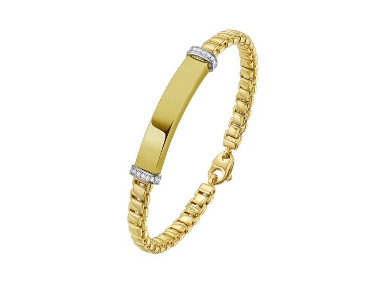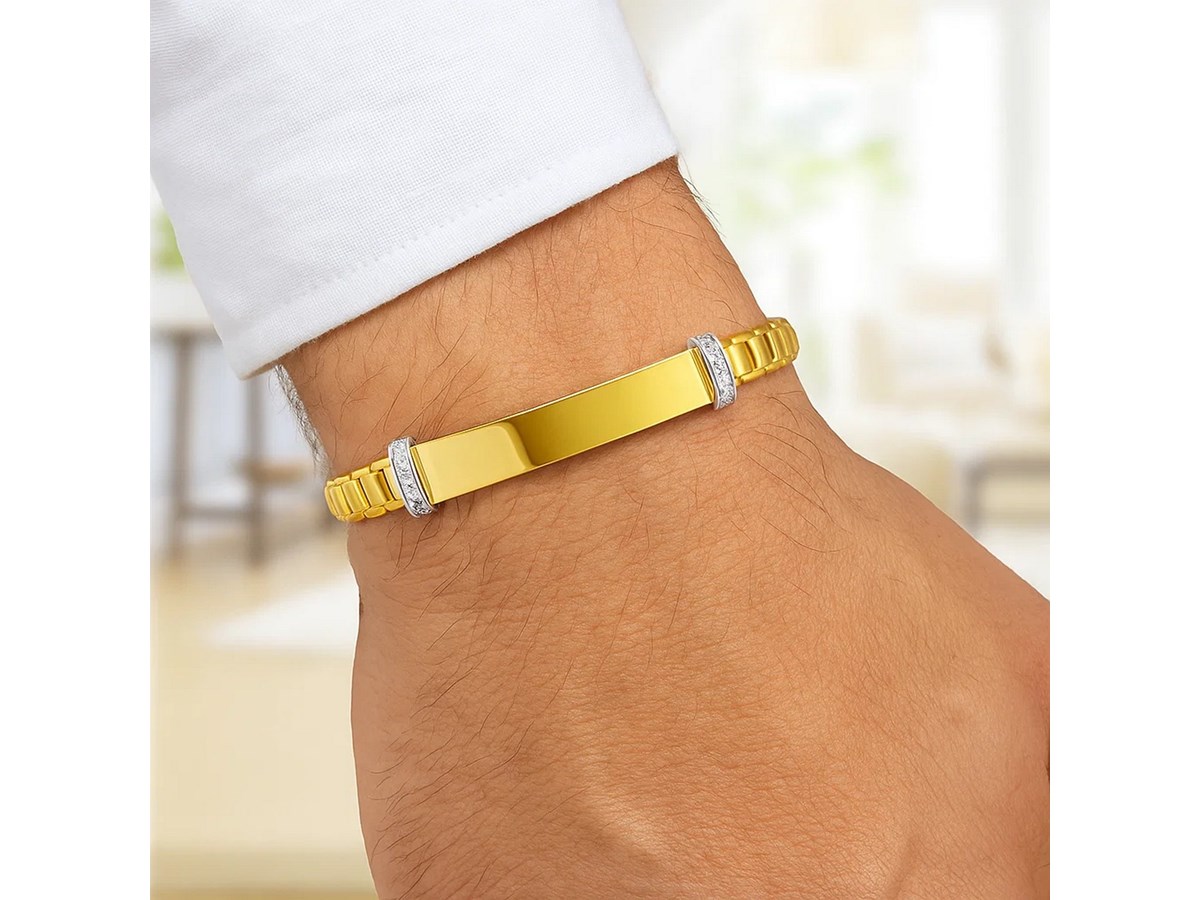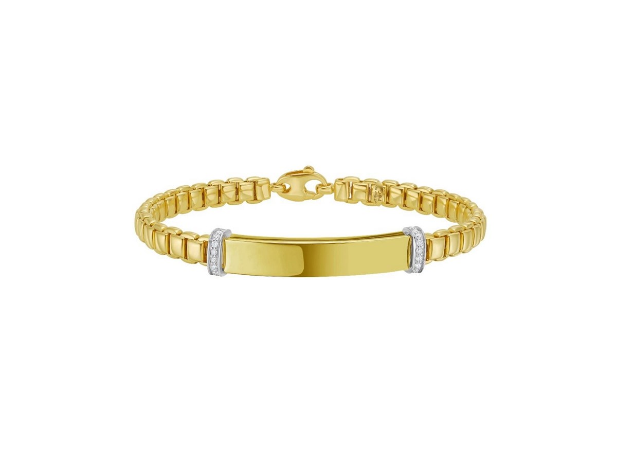 Elegant 14K yellow gold Venetian link bracelet featuring a polished finish and a 0.19ct diamond-accented bar centerpiece. Secured with a lobster clasp, this timeless design combines sophistication and sparkle for effortless everyday luxury.