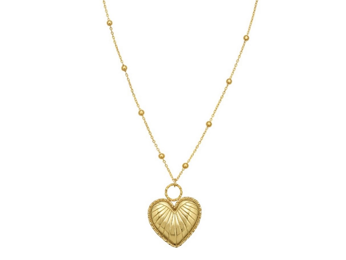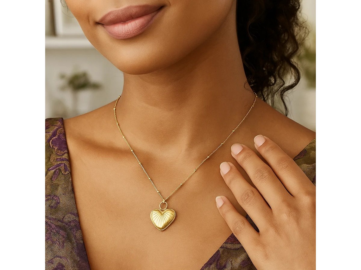 14K Yellow Gold Vintage Puffed Heart Necklace