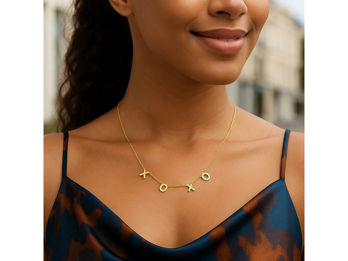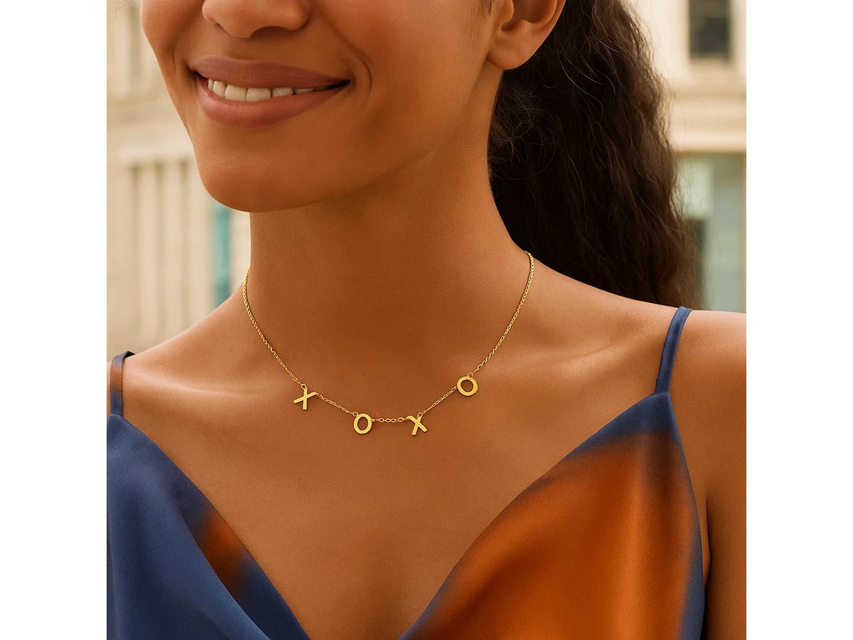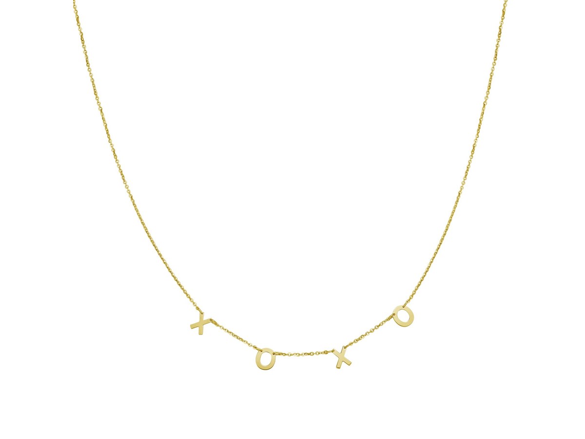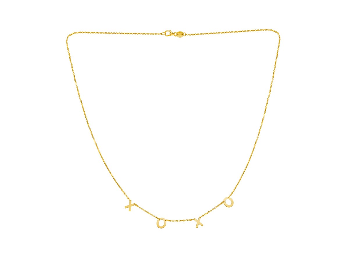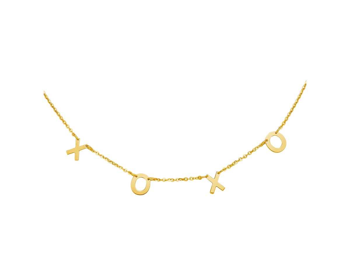 This 14K yellow gold XOXO necklace features polished “XO” charms along a delicate chain, creating a sweet and modern symbol of love. Its warm golden shine makes it perfect for everyday wear, thoughtful gifting, or layering with your favorite pieces.
