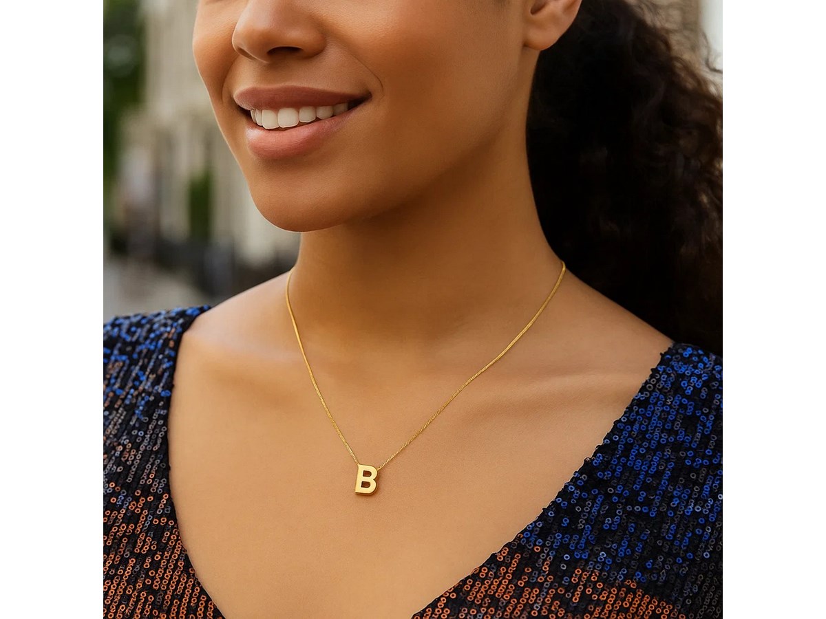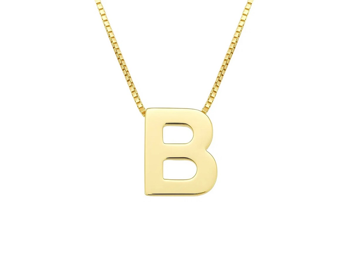 14K Yellow Gold Yours Truly Block Letter Initial B Necklace