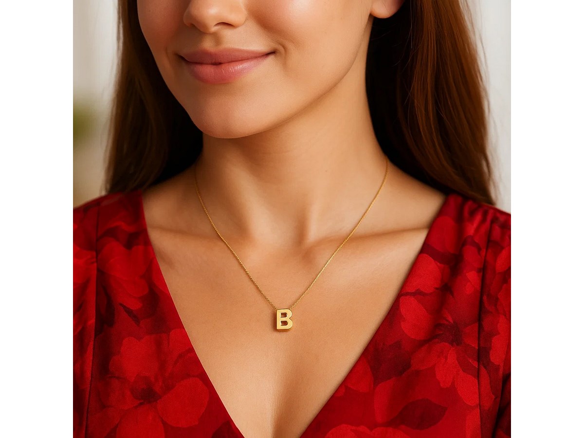 This 14K yellow gold Yours Truly block letter initial B necklace features a polished, modern letter pendant on a delicate chain. Its warm shine and personalized touch make it perfect for everyday wear, meaningful gifting, or layering with your favorite pieces