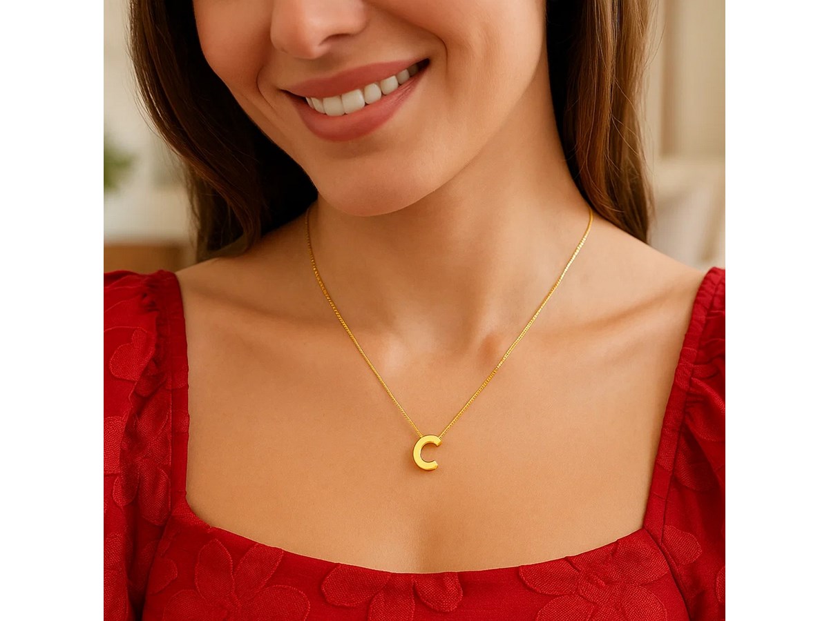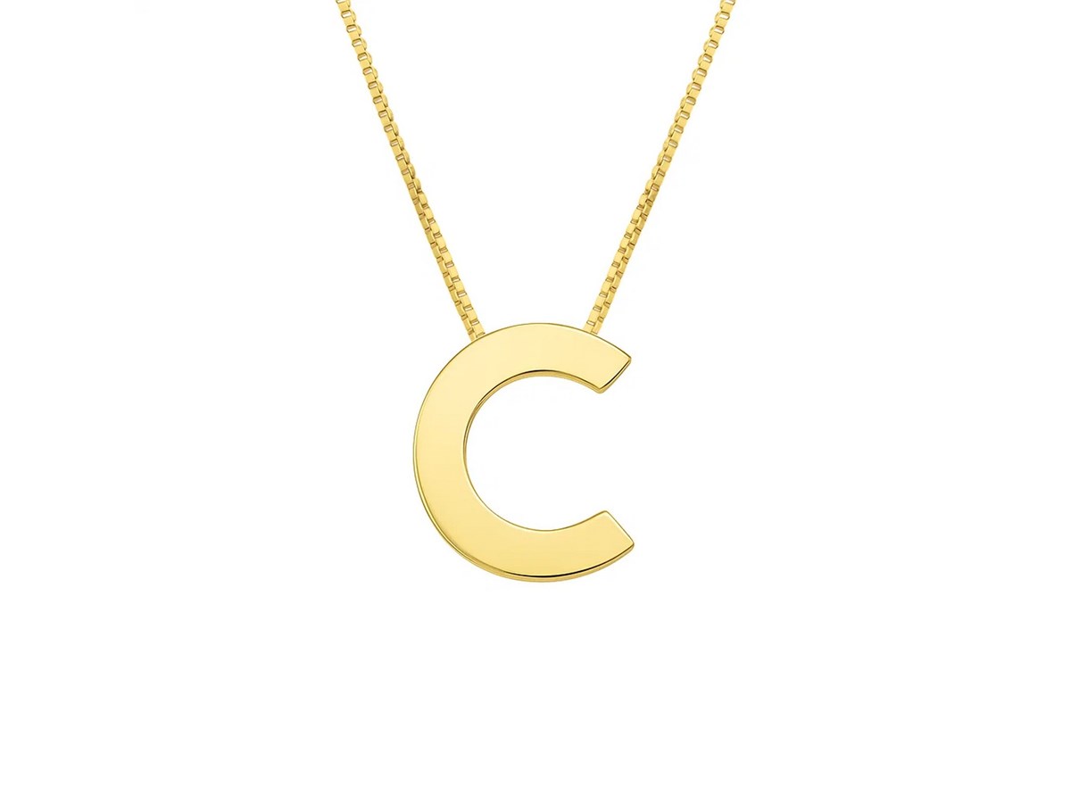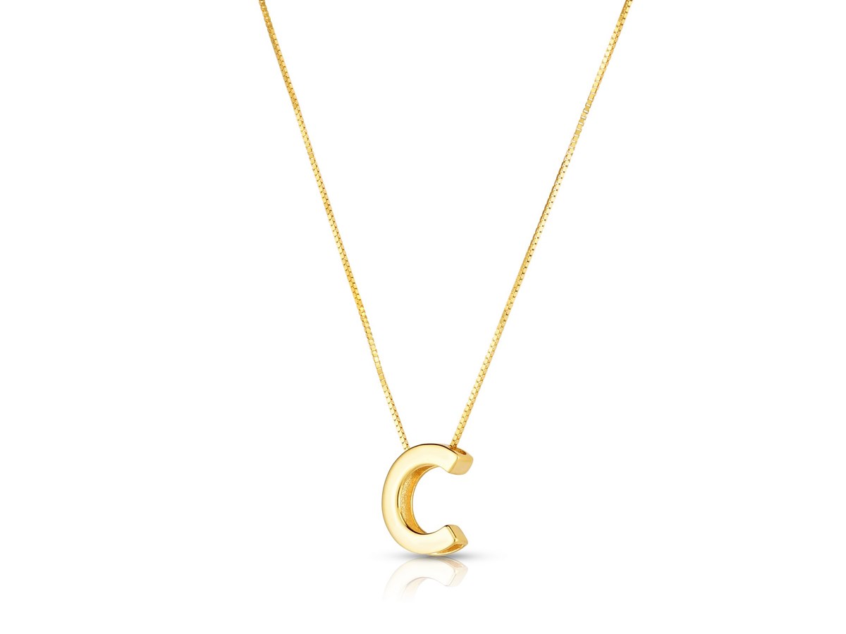 14K Yellow Gold Yours Truly Block Letter Initial C Necklace