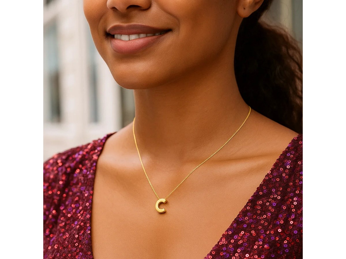 This 14K yellow gold Yours Truly block letter initial C necklace features a sleek, polished letter pendant on a delicate chain. Its warm golden shine and personal touch make it perfect for everyday wear, thoughtful gifting, or layering with other favorites.