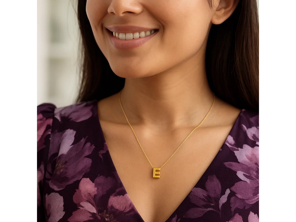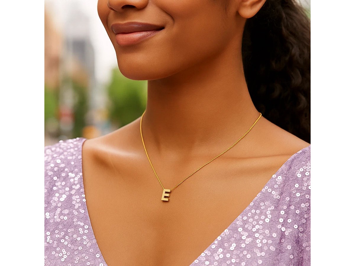 14K Yellow Gold Yours Truly Block Letter Initial E Necklace
