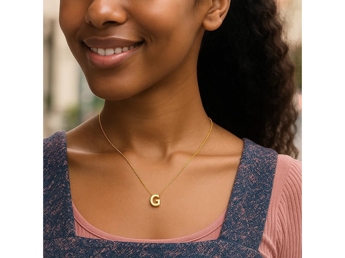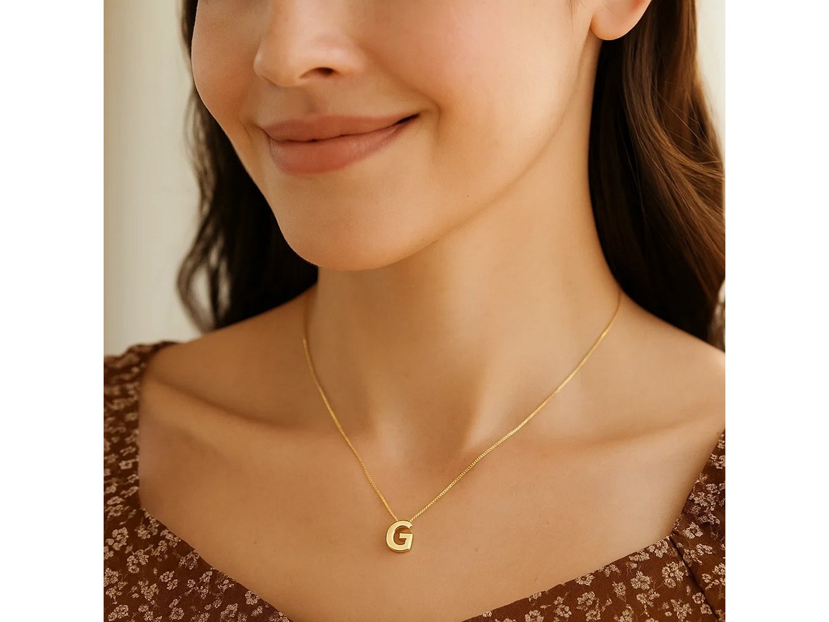 14K Yellow Gold Yours Truly Block Letter Initial G Necklace