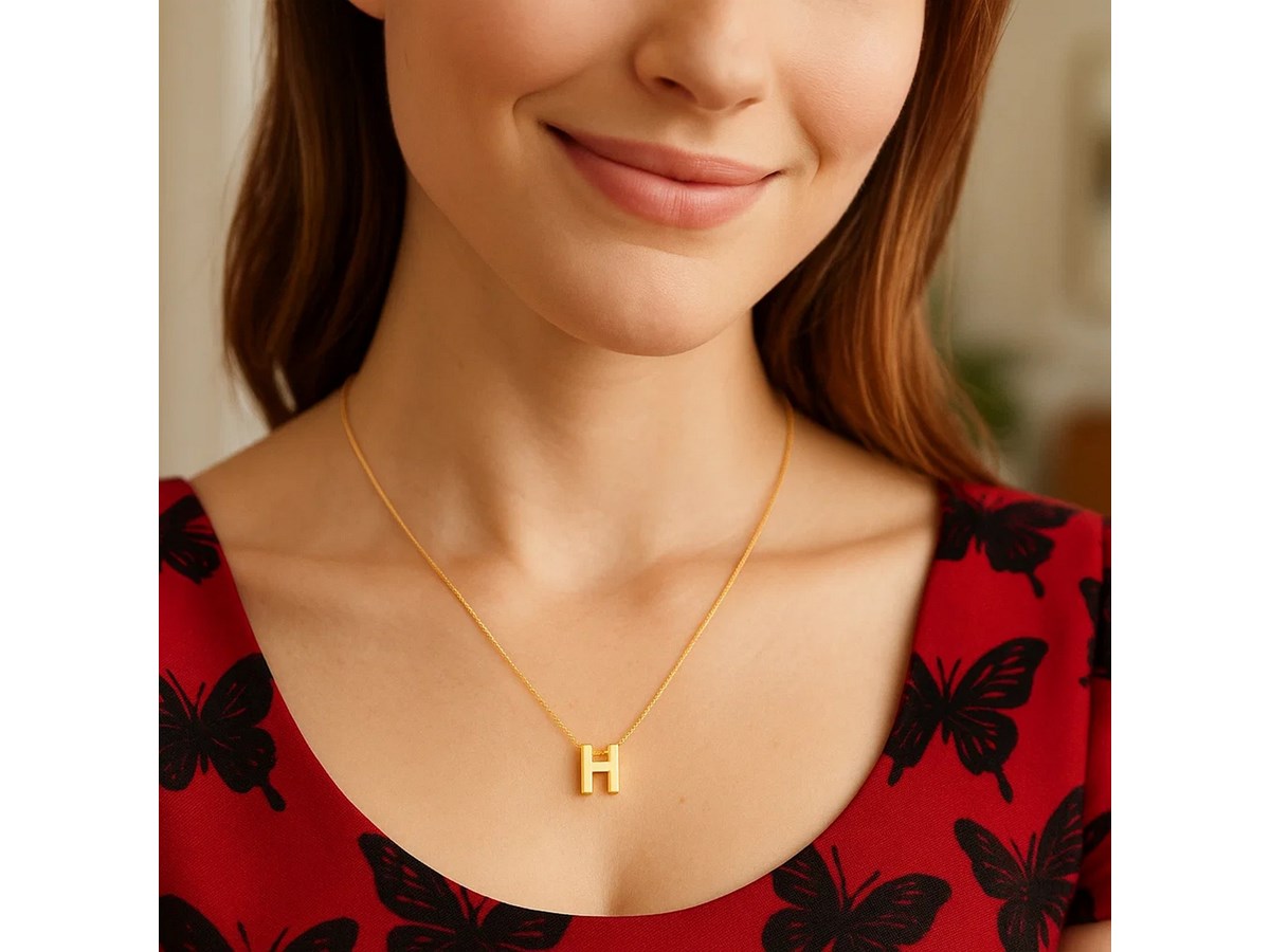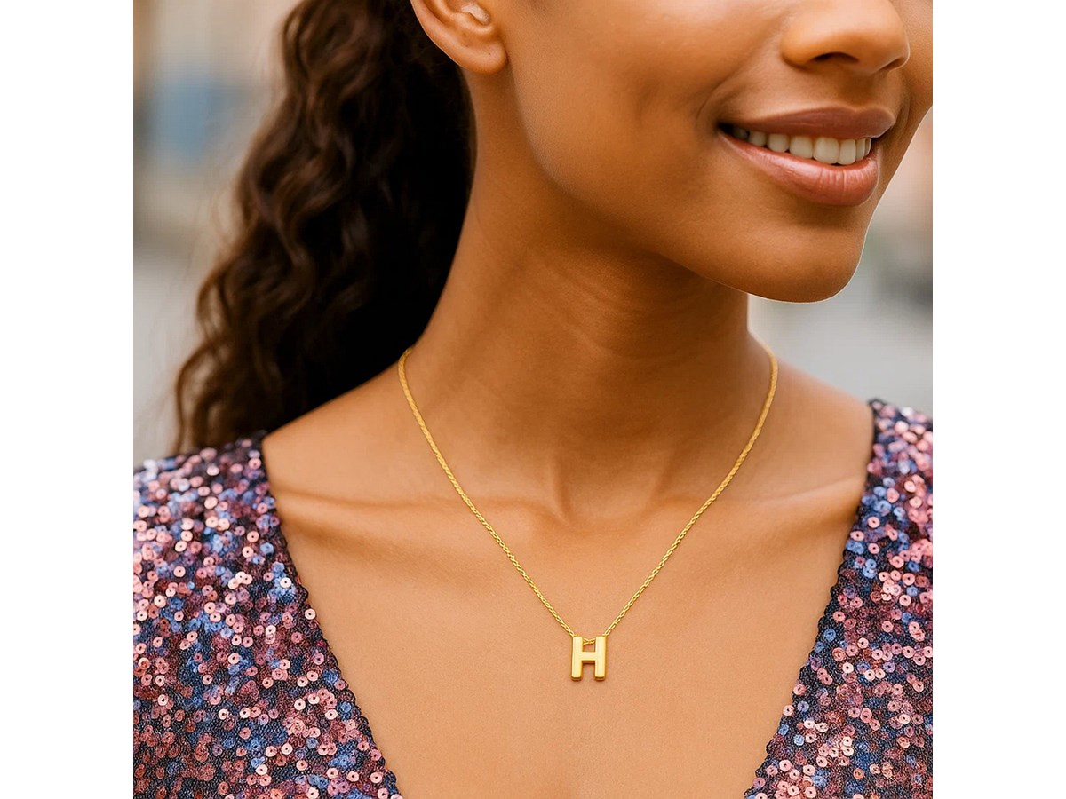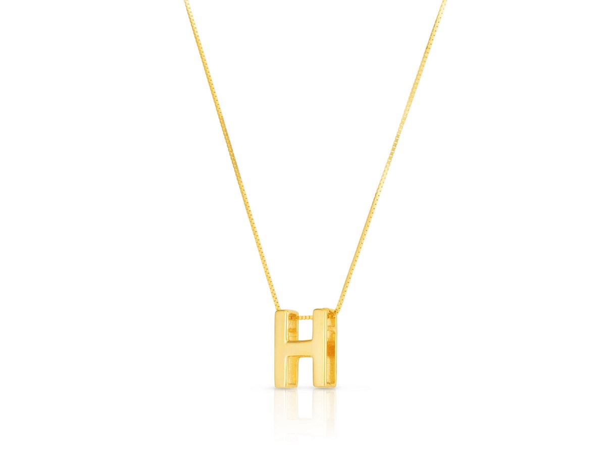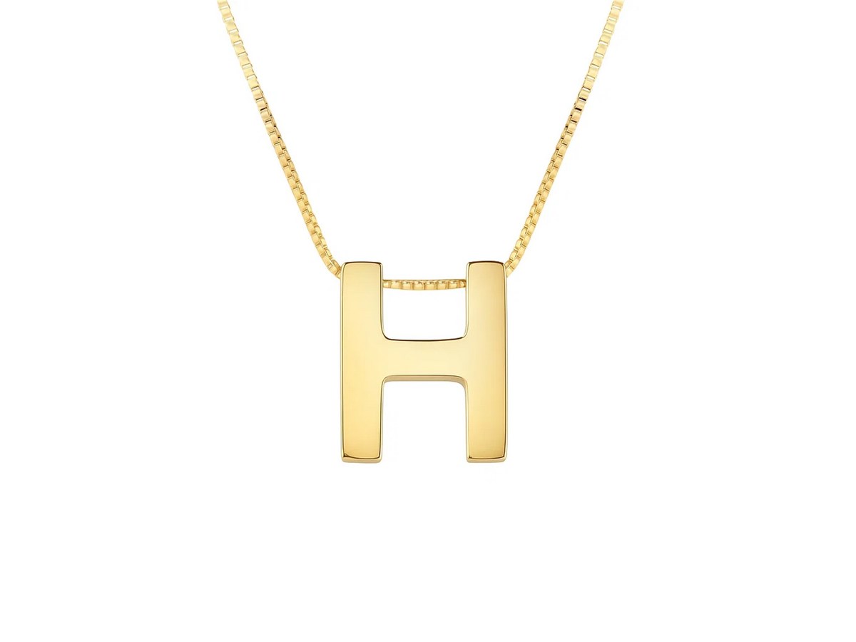 14K Yellow Gold Yours Truly Block Letter Initial H Necklace