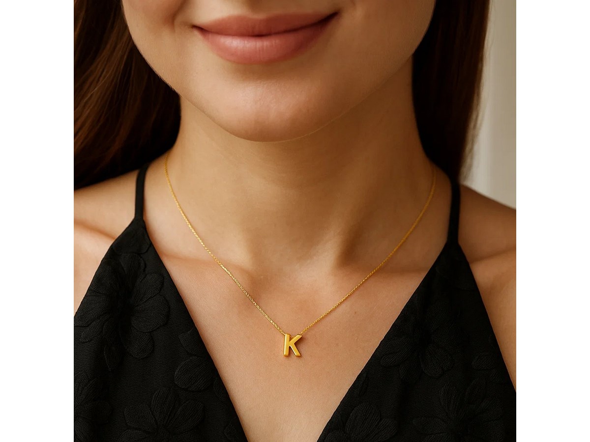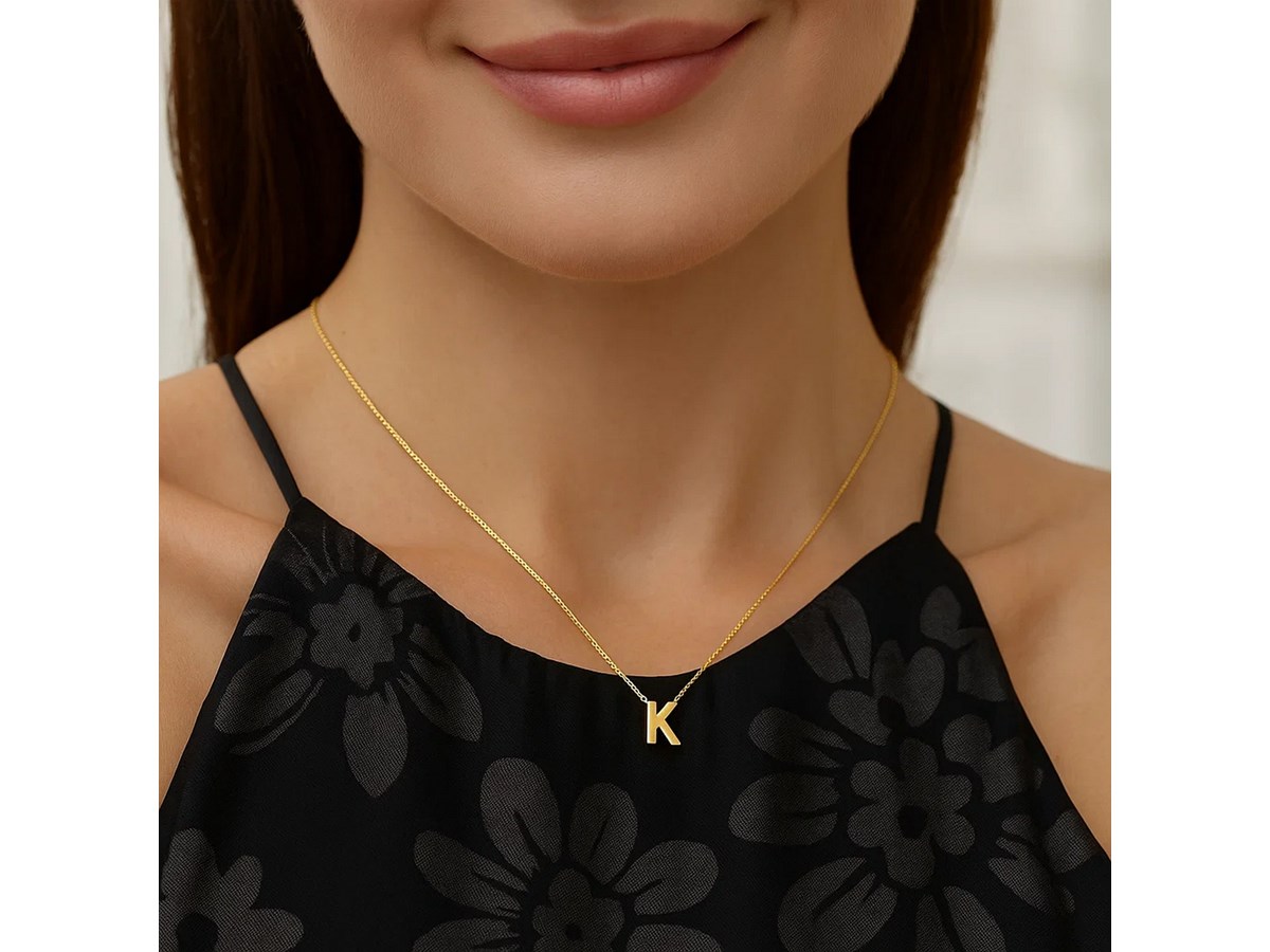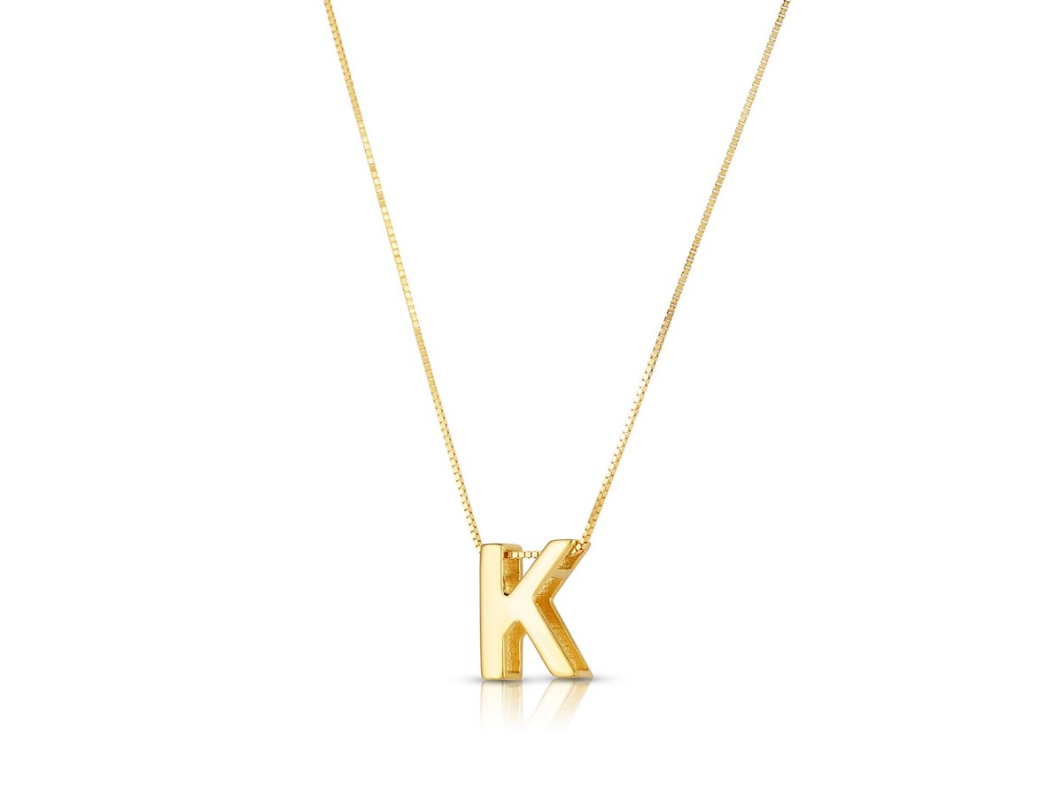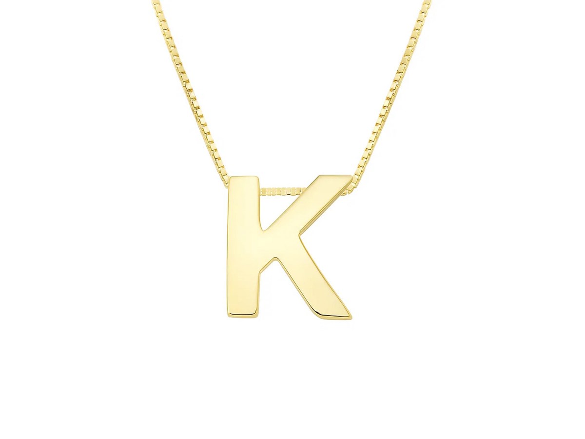 14K Yellow Gold Yours Truly Block Letter Initial K Necklace