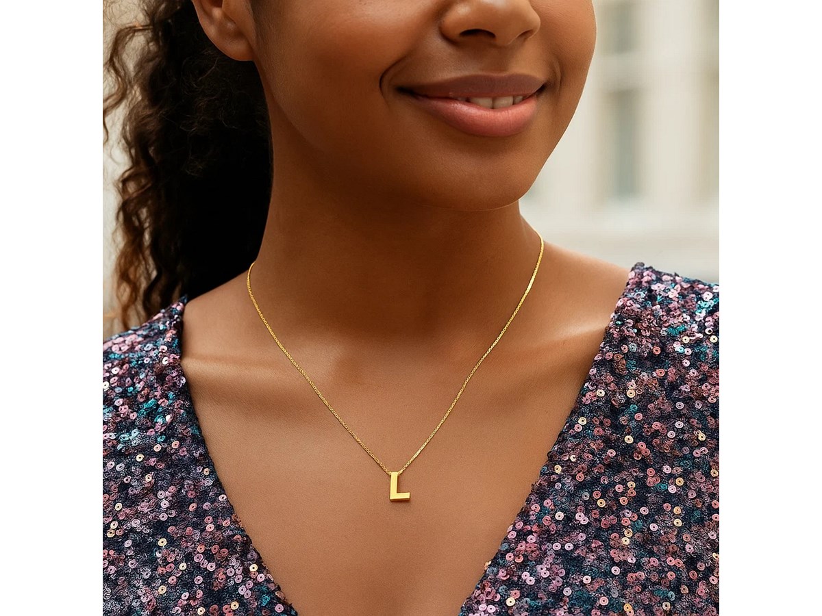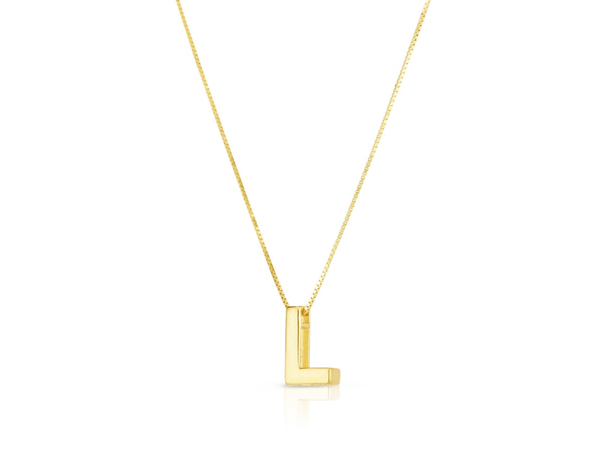 14K Yellow Gold Yours Truly Block Letter Initial L Necklace