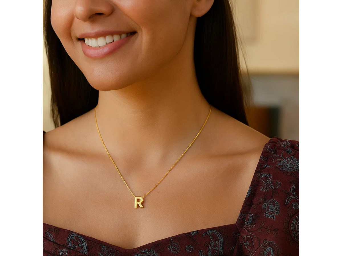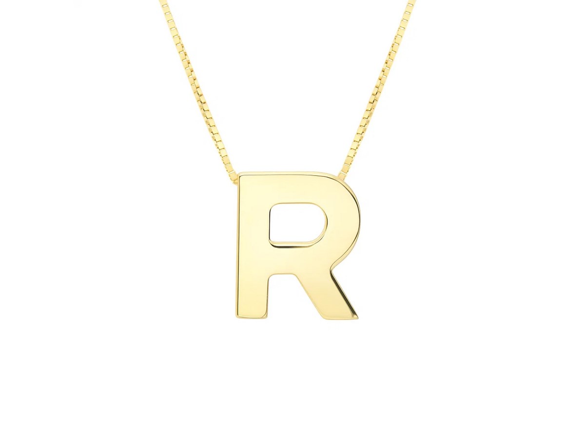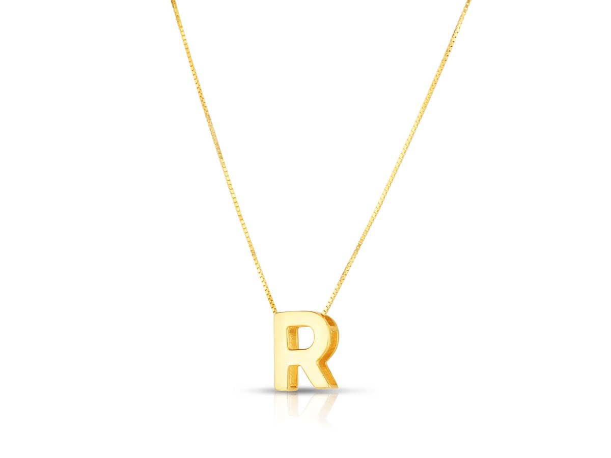 14K Yellow Gold Yours Truly Block Letter Initial R Necklace