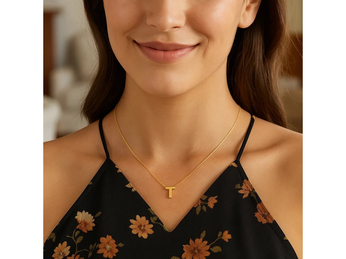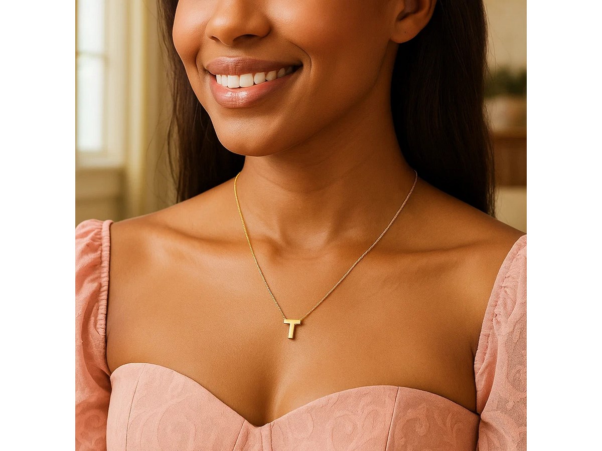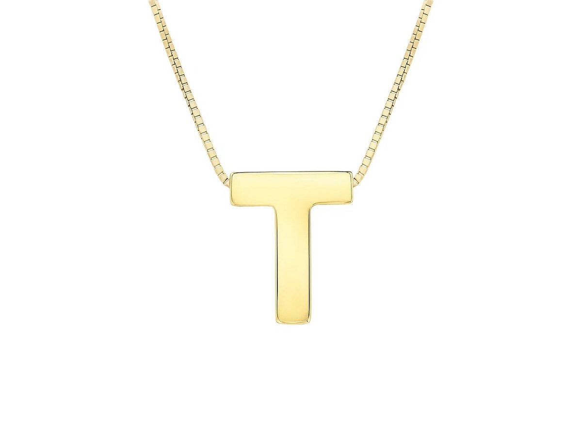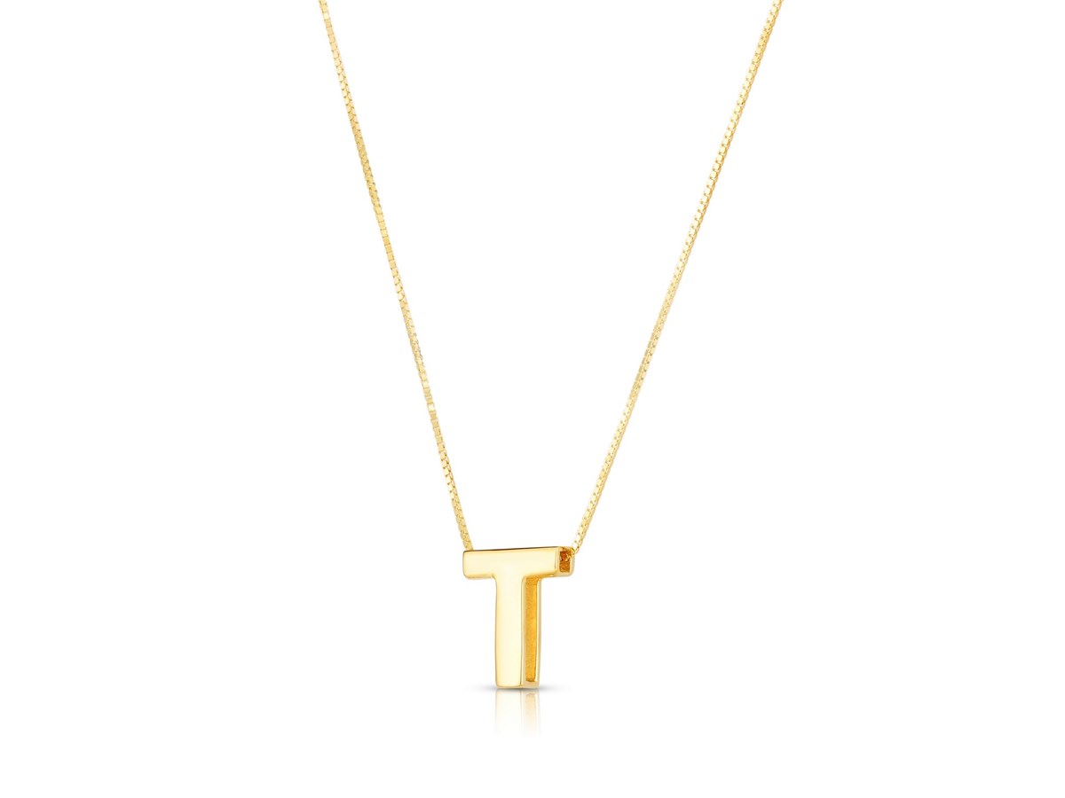 14K Yellow Gold Yours Truly Block Letter Initial T Necklace
